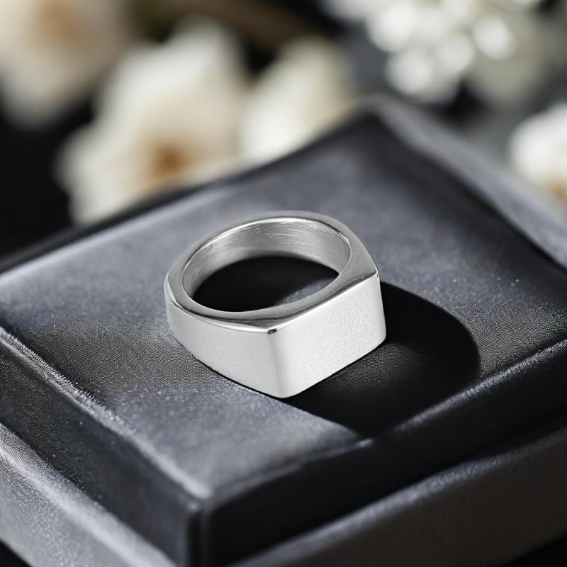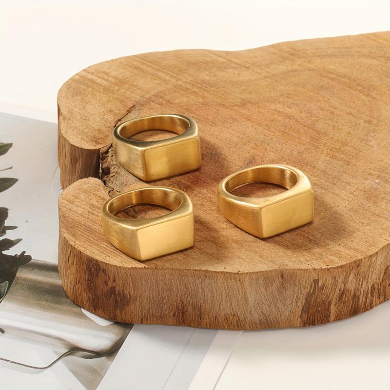 This square ring is plated with 18K gold and made of durable stainless steel, suitable for daily wear. It is a unisex design that makes a great gift for any occasion.