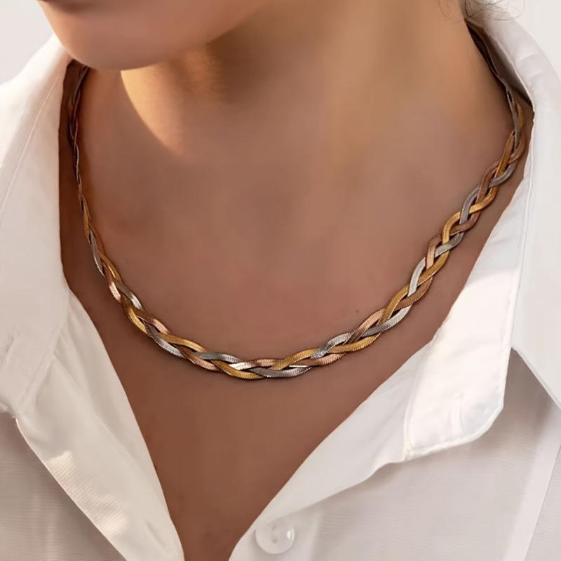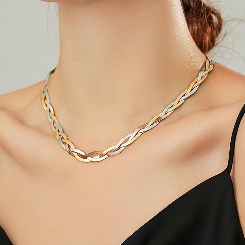 Elegant vintage style necklace made of stainless steel with 18K gold plating. Ideal for birthdays, parties, or everyday wear.