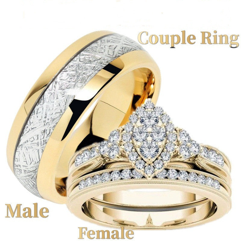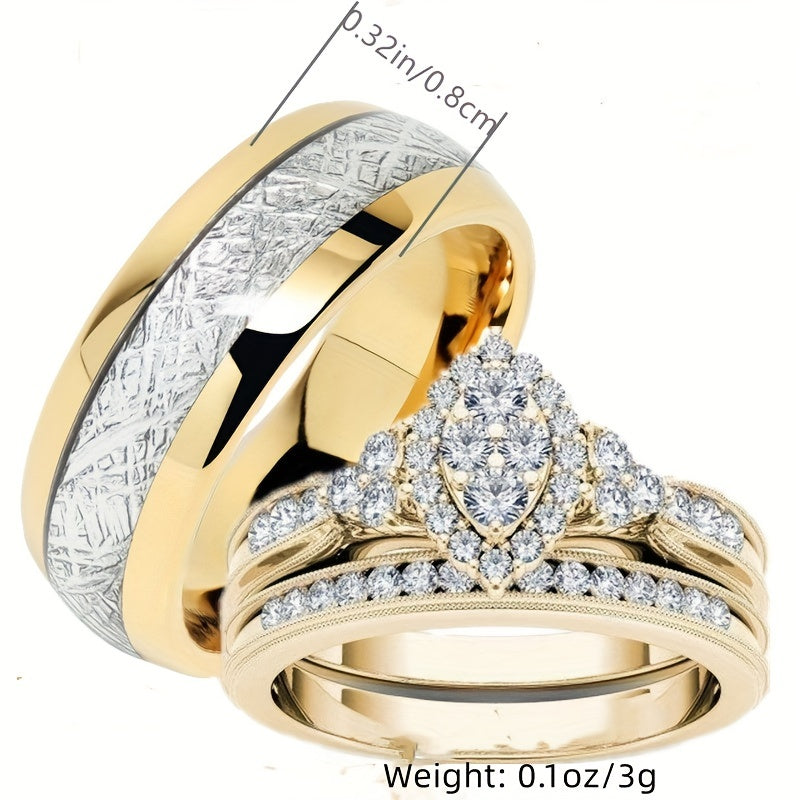 Stylish 18K gold plated ring set with zircon stones for men and women. Perfect for weddings and special occasions.