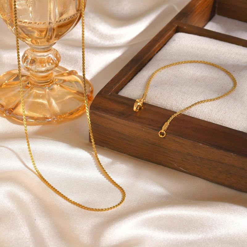Elevate your style with this 18k gold plated stainless steel S shaped layered necklace. This minimalist jewelry piece is tarnish resistant and durable, perfect for holidays and casual occasions.