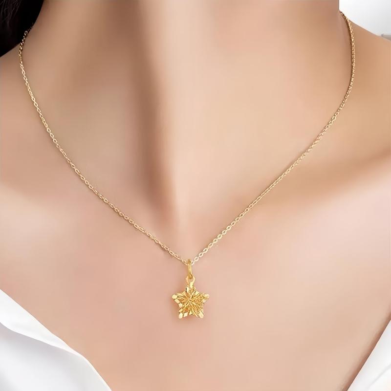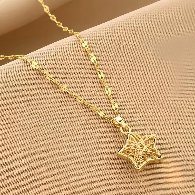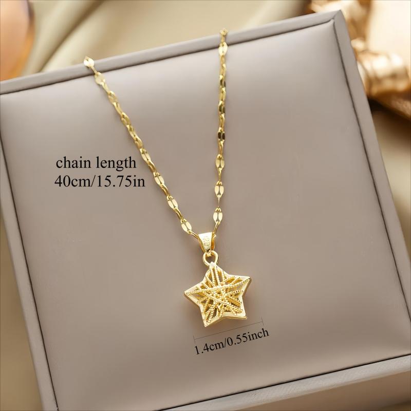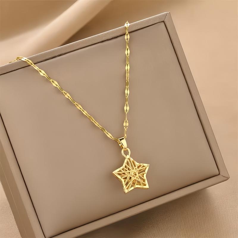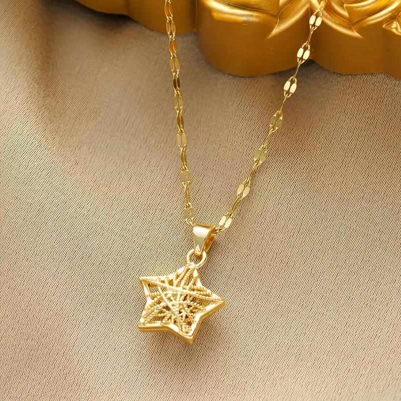 Elegant and stylish star pendant necklace plated in 18K gold. Made from hypoallergenic stainless steel, it is lightweight and comfortable to wear.