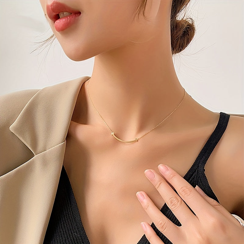 Get the elegance of 18K golden clavicle chain made of rose golden titanium steel that never fades.