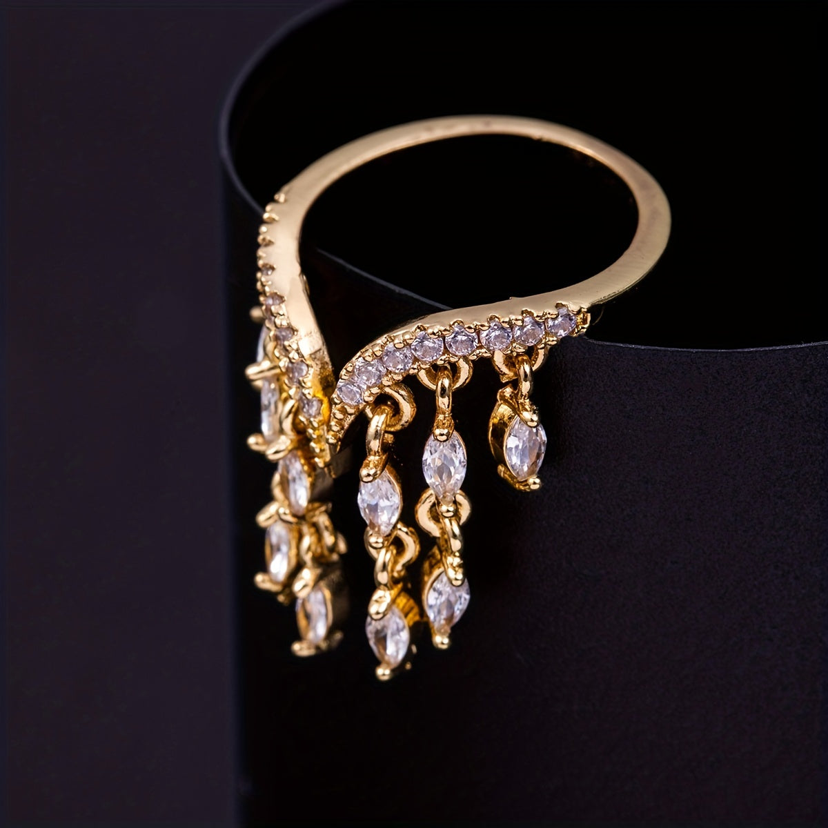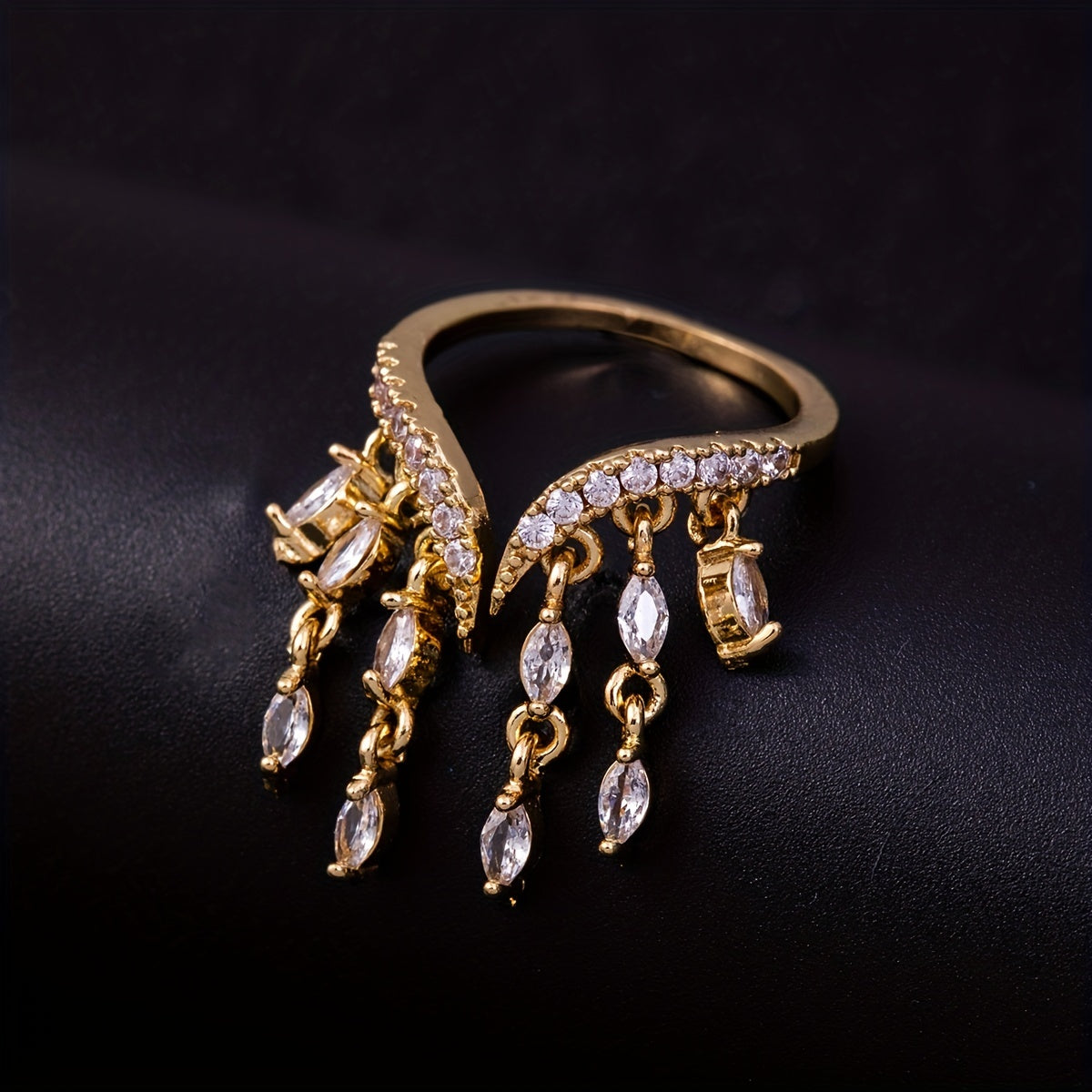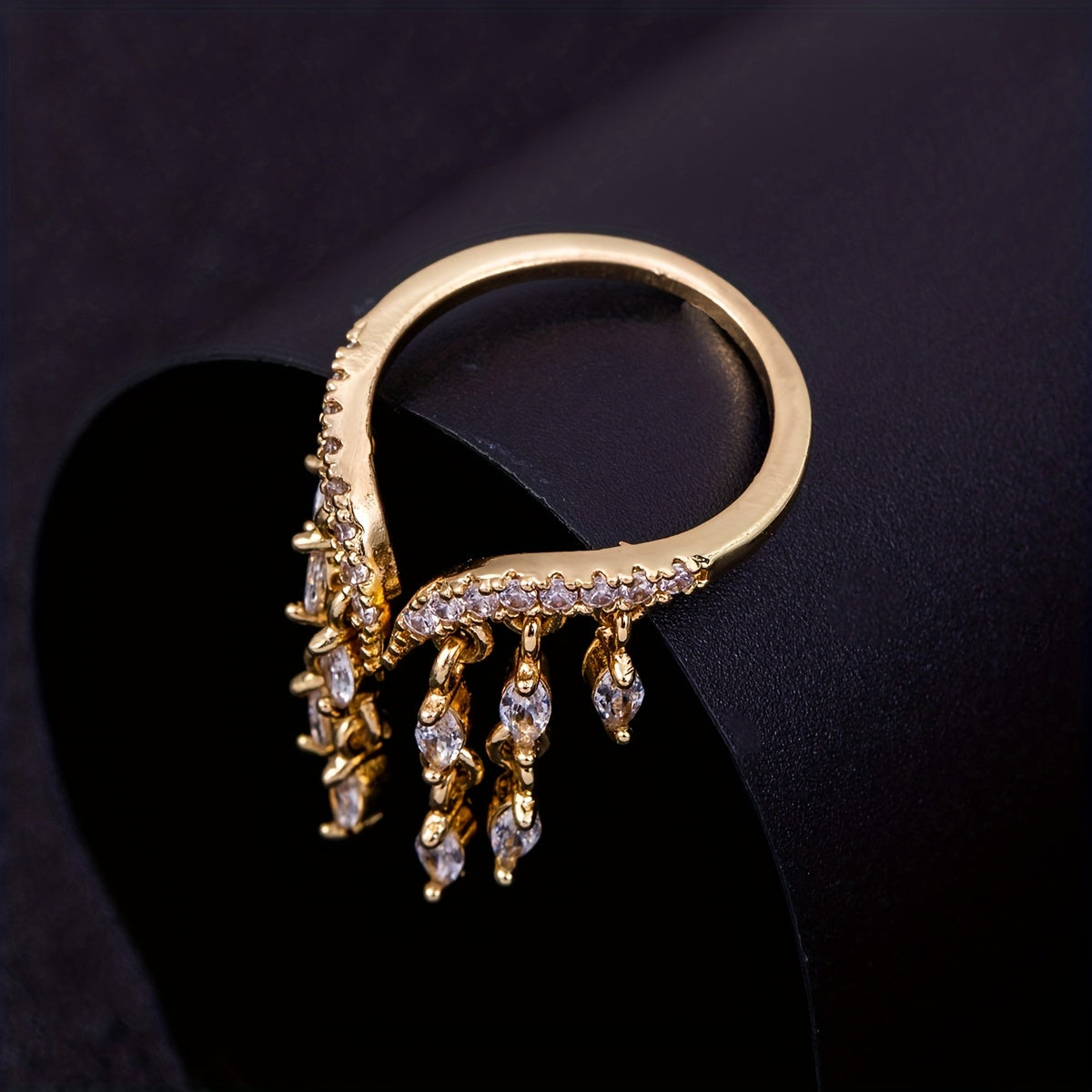 18K Golden Plated Zircon Ring Adjustable Size Jewelry