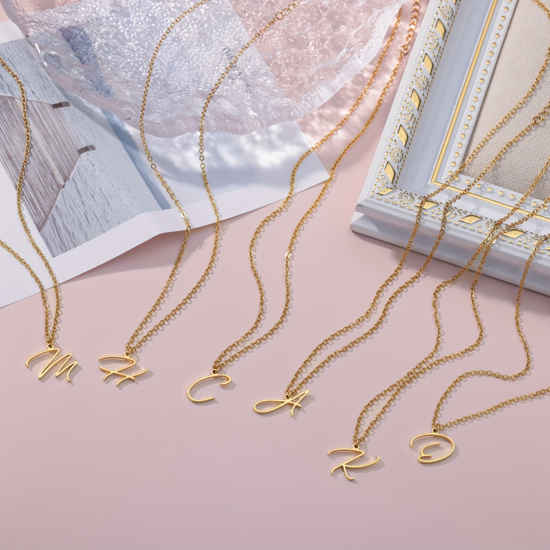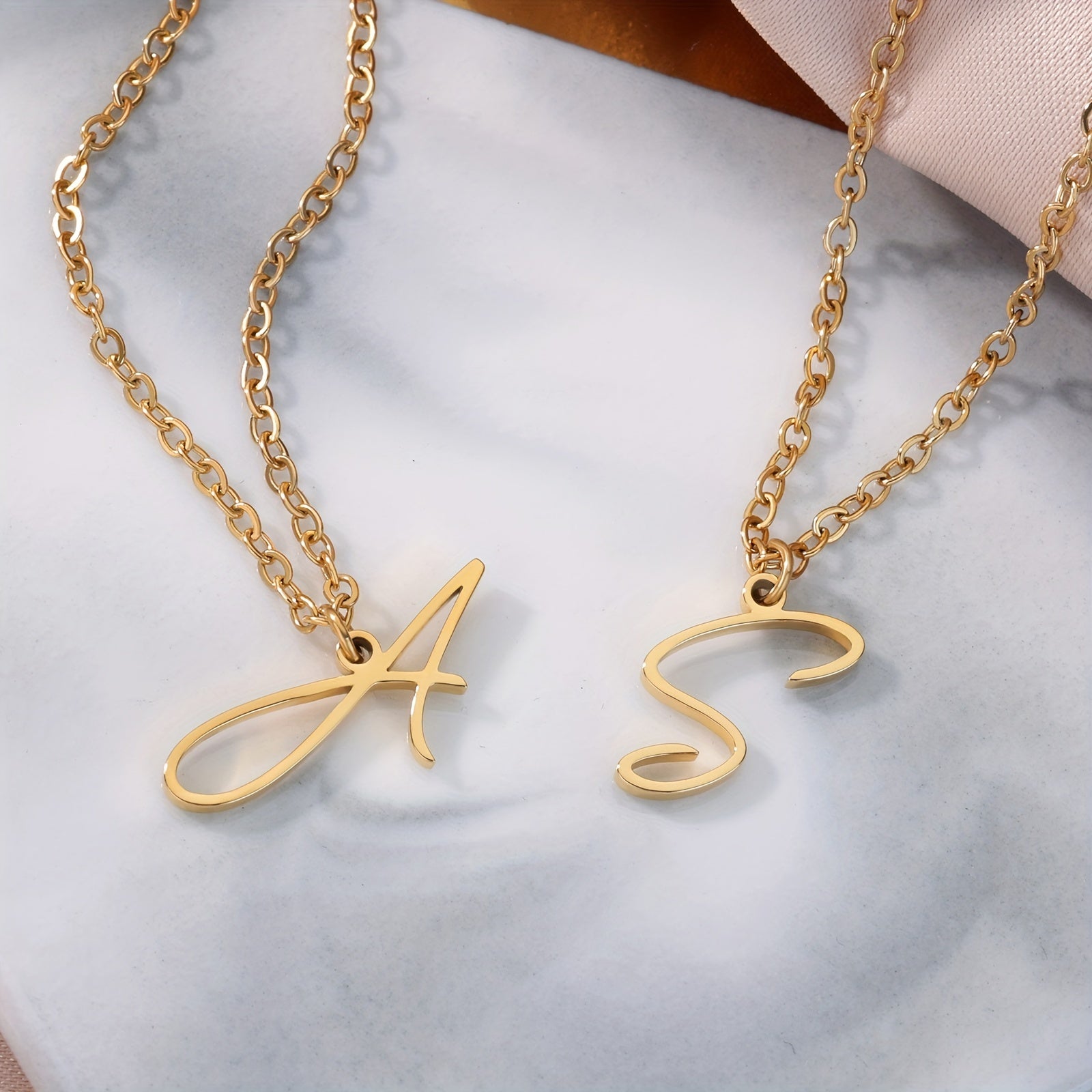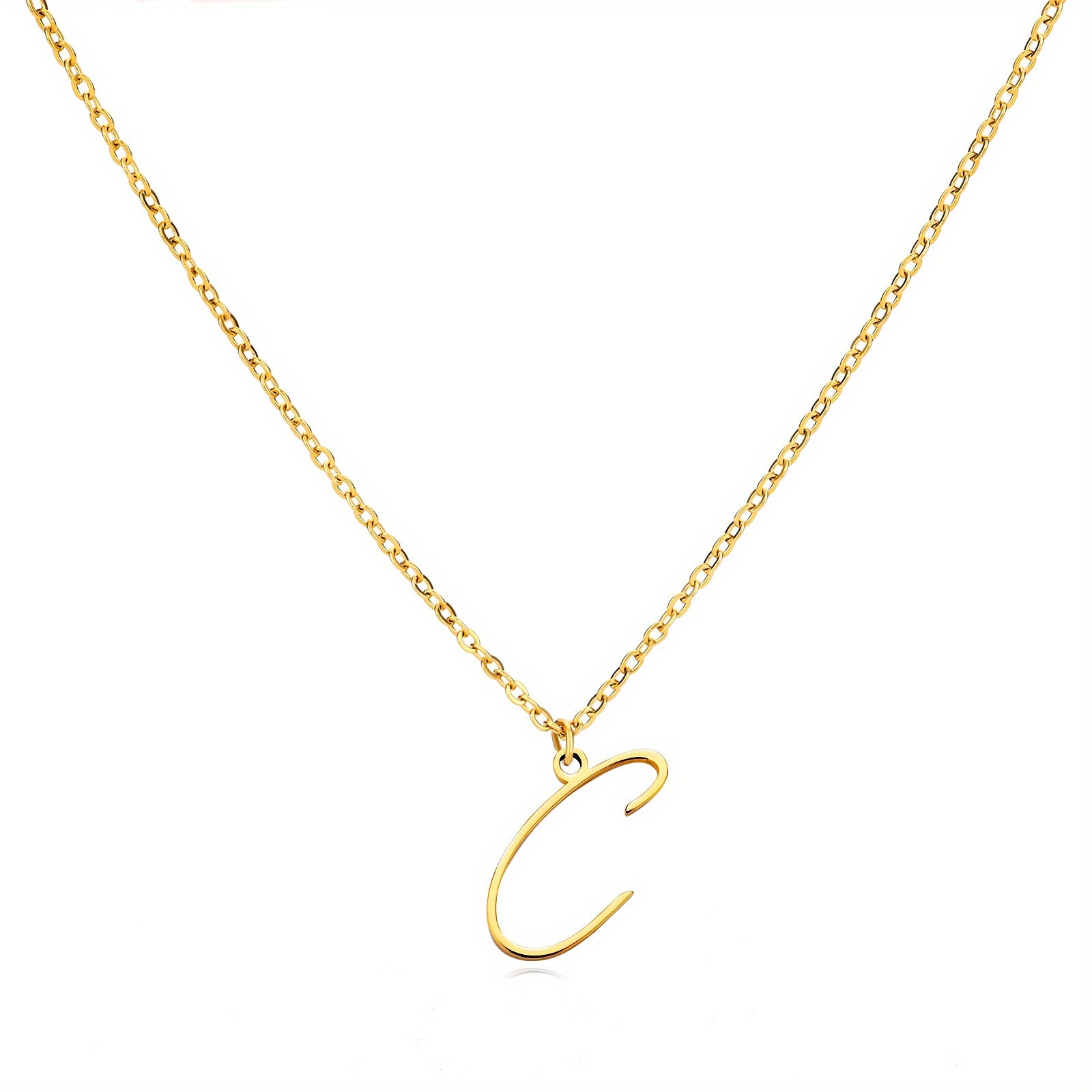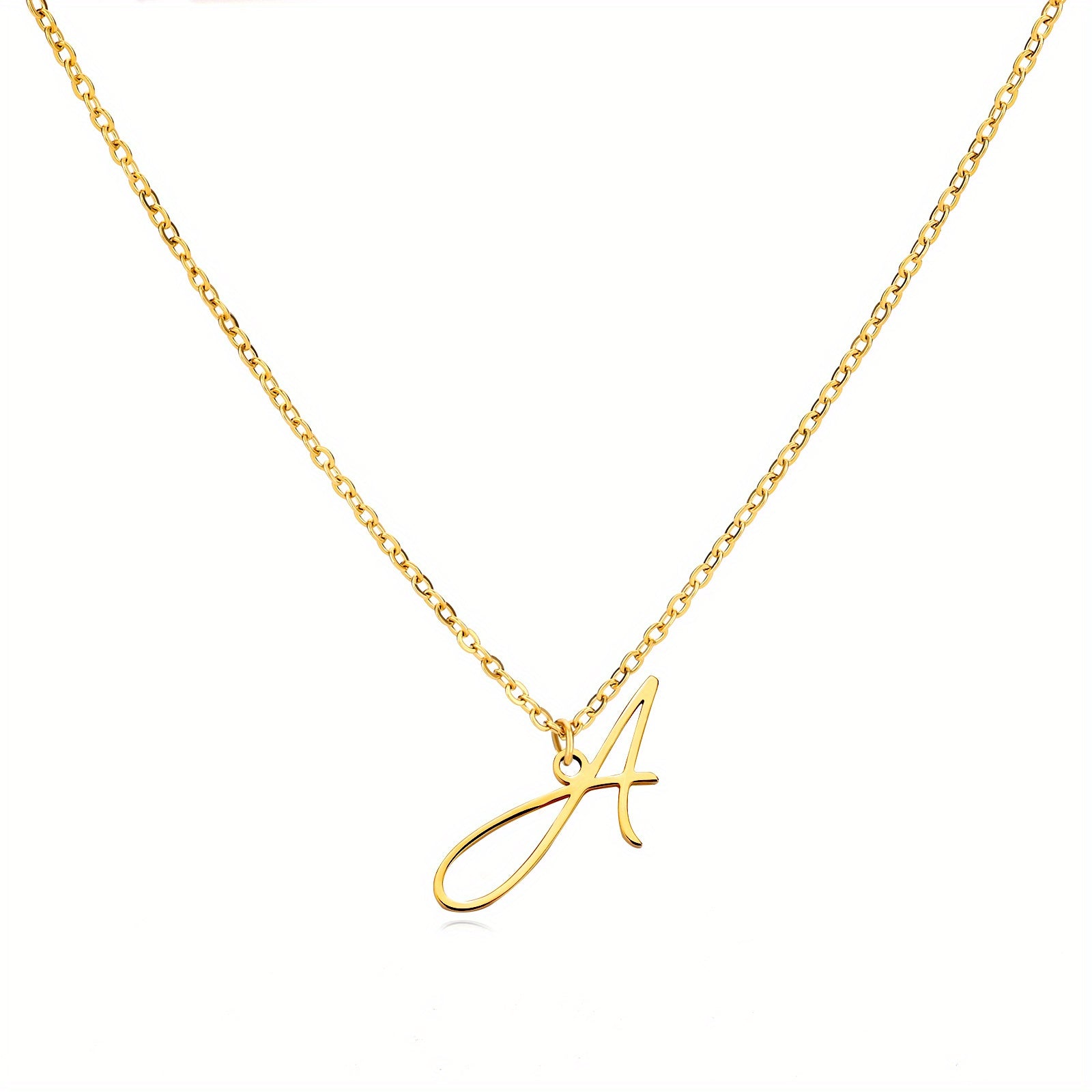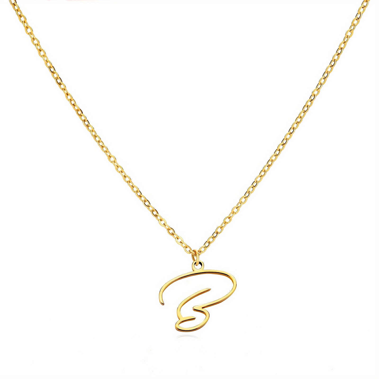 Elevate your style with this stunning 18k golden plated stainless steel necklace featuring a versatile cursive letter design.