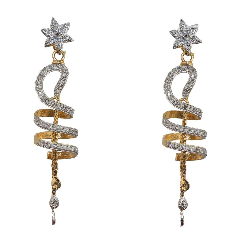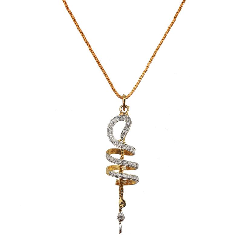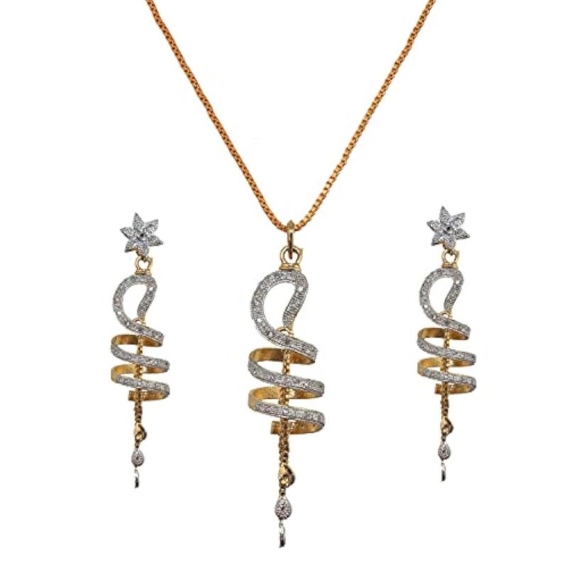 Adorn yourself with this stunning 18K plated spiral pendant set featuring American Diamonds. Perfect for any occasion.