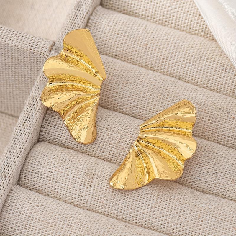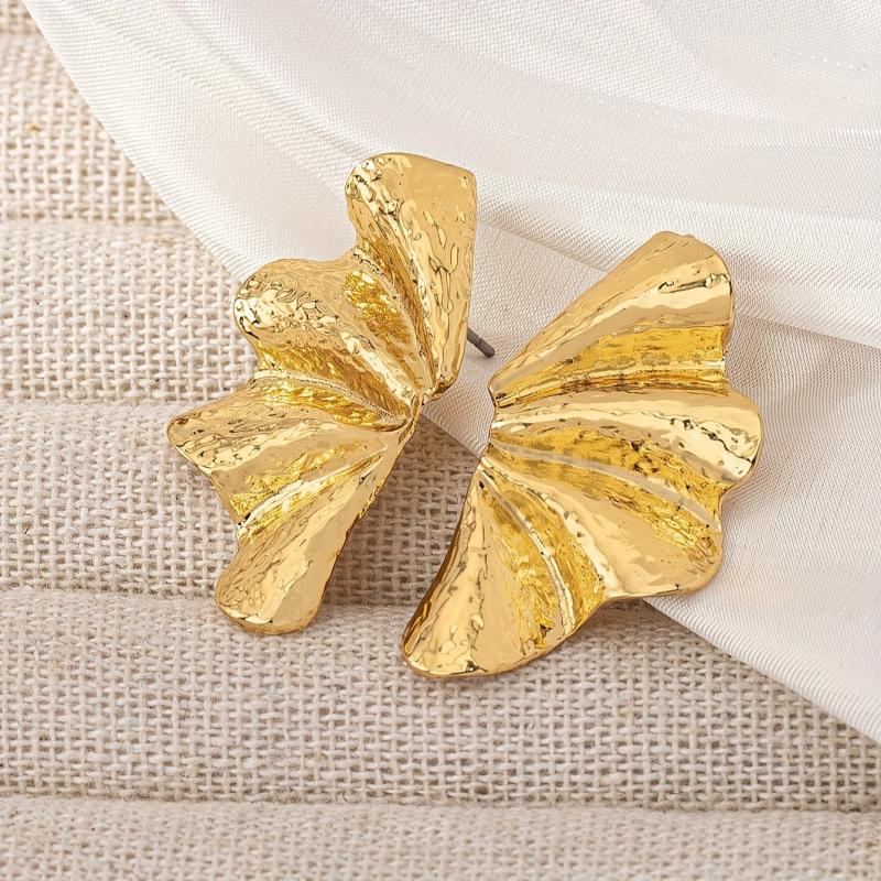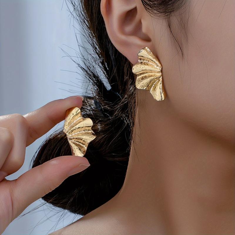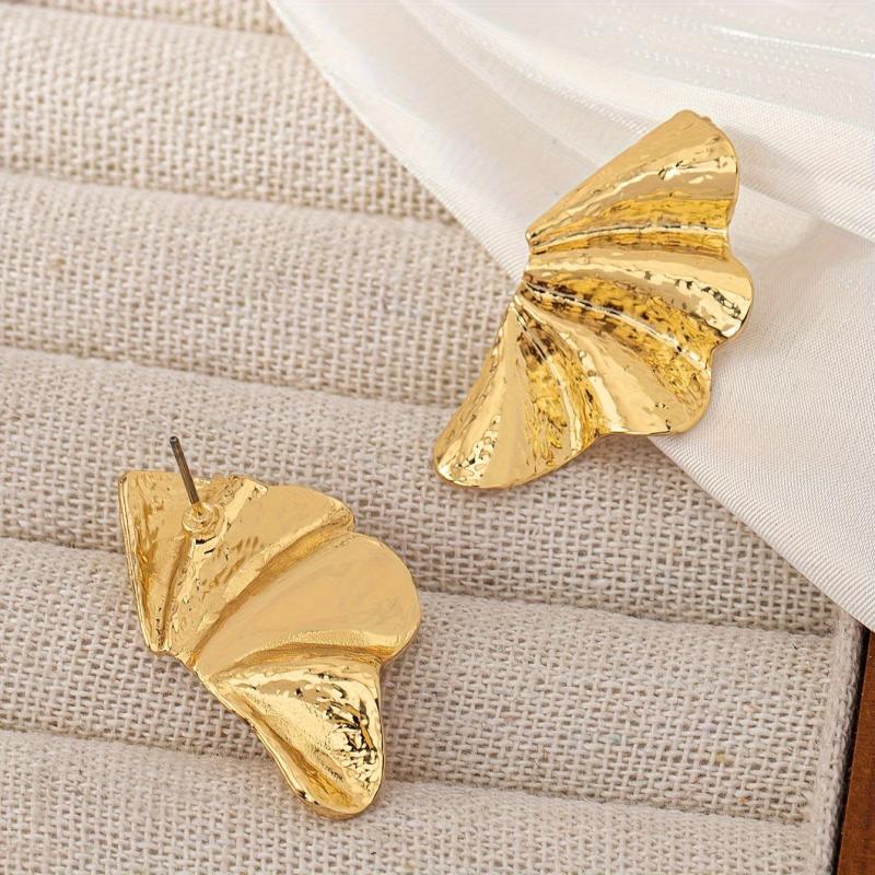 These glossy alloy stud earrings are perfect for everyday wear or special occasions. The 18K plating adds a touch of luxury to your look.