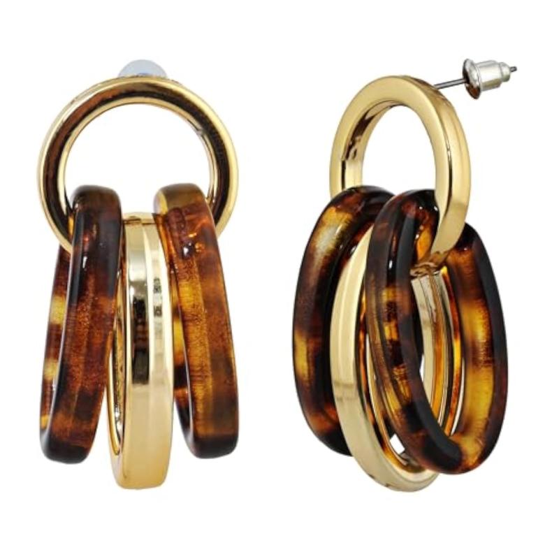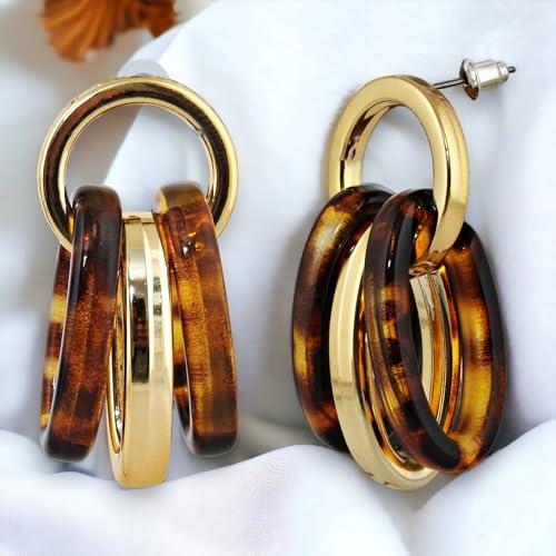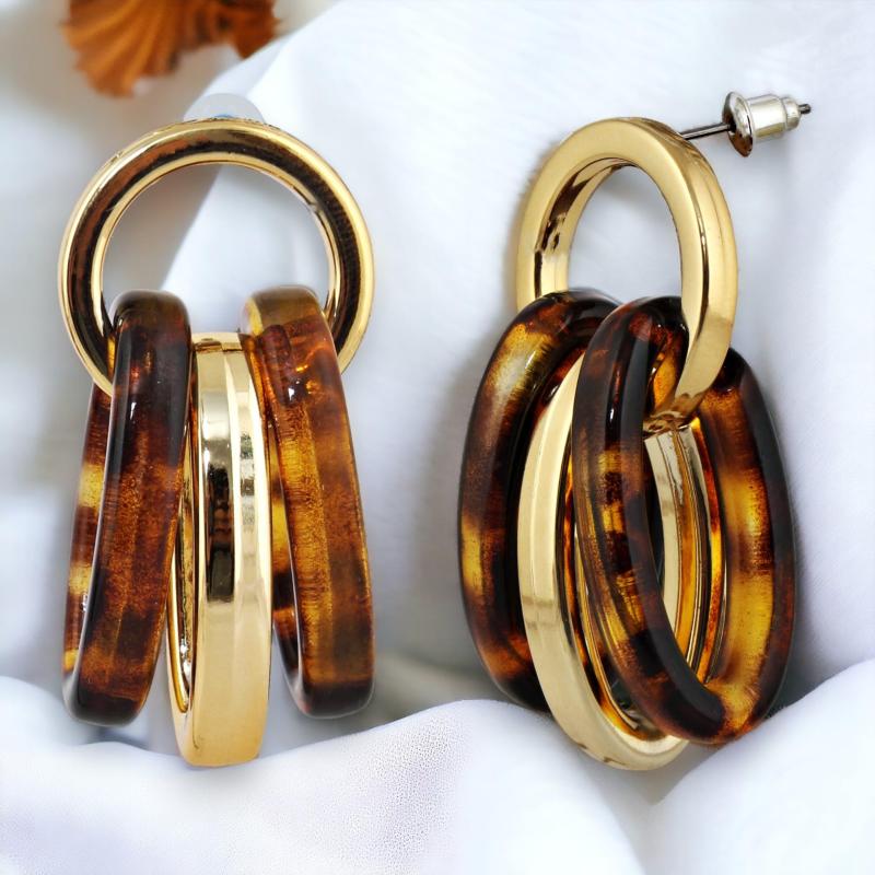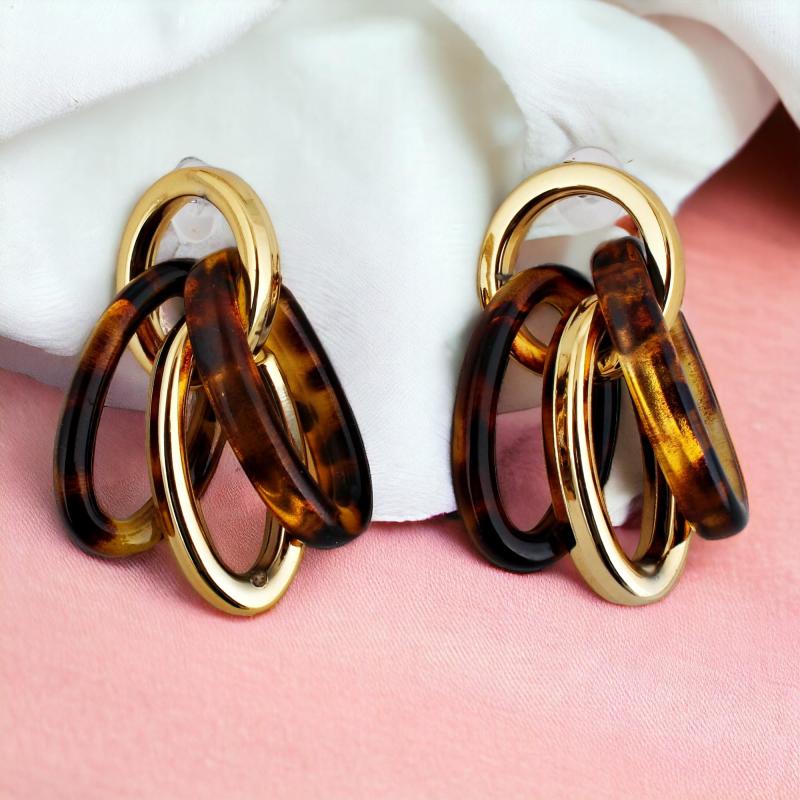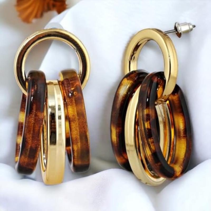 Elegant and trendy drop earrings featuring circle link design with multiple rings. Crafted with high-quality 18k gold plating for a luxurious look.