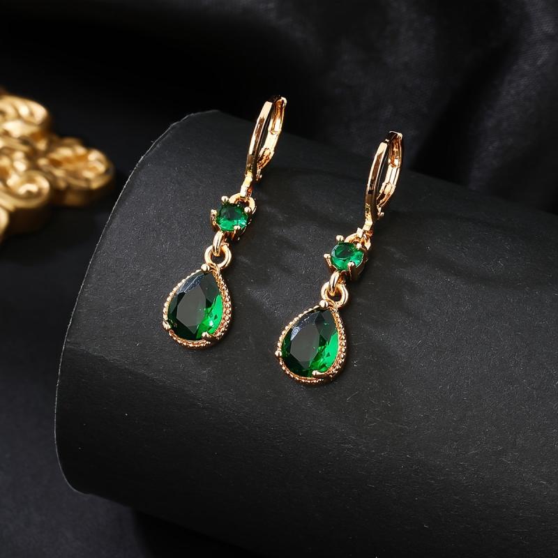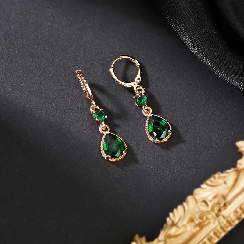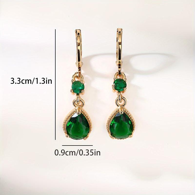 Elevate your style with these stunning 18K plated copper dangle earrings featuring green cubic zirconia. Perfect for everyday wear or vacations.