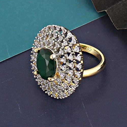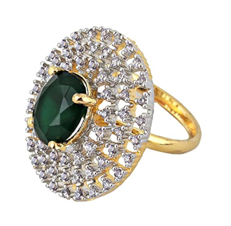 Elegant 18K plated ring with green American diamond for a stylish look.