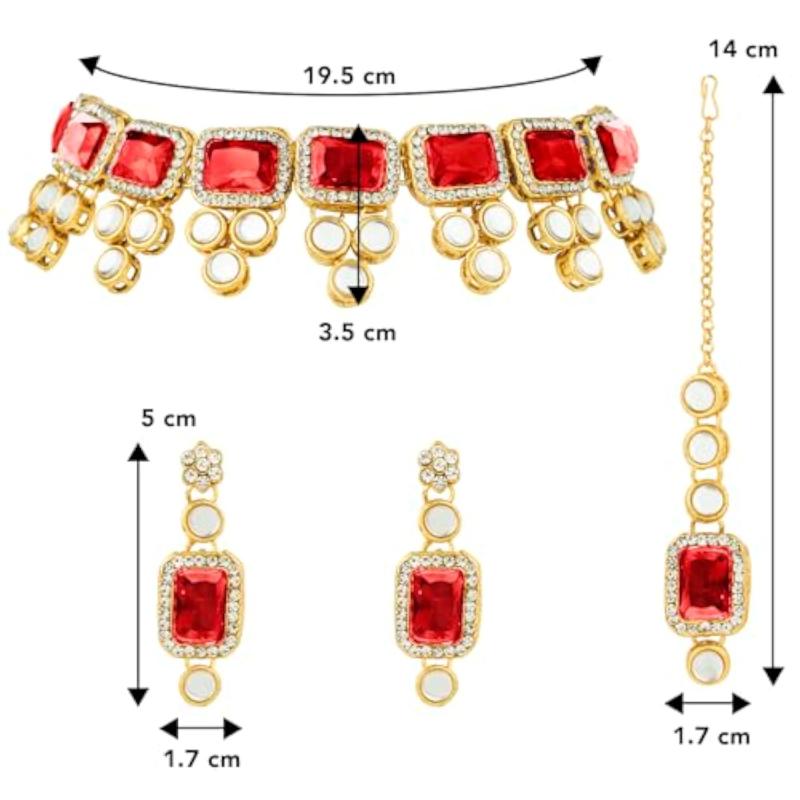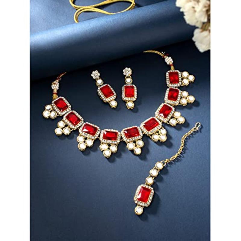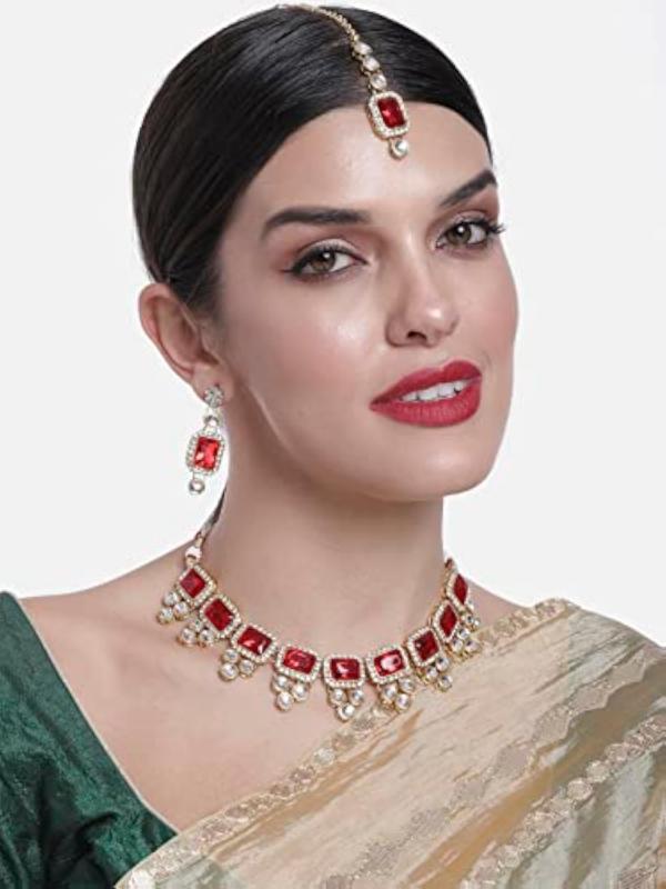 • Includes necklace, earrings, and maang tikka