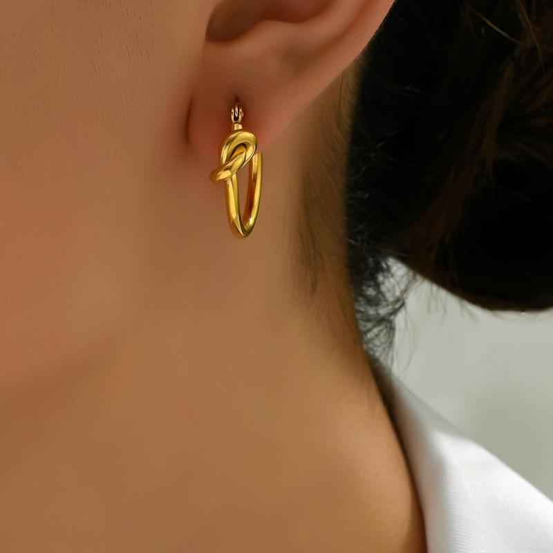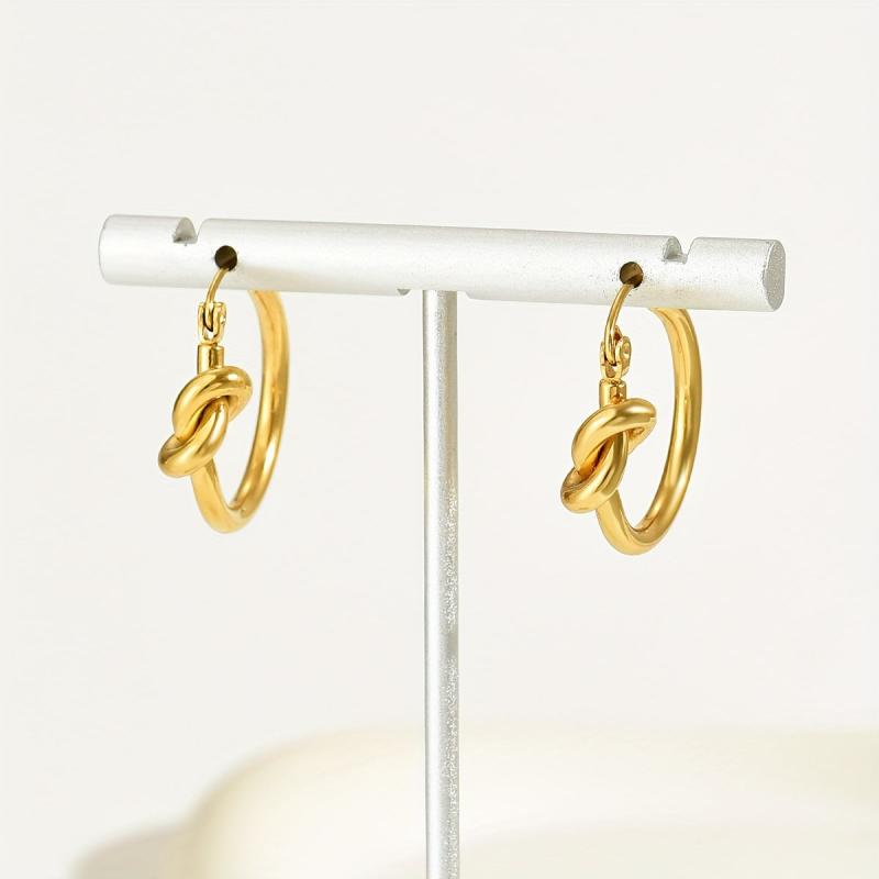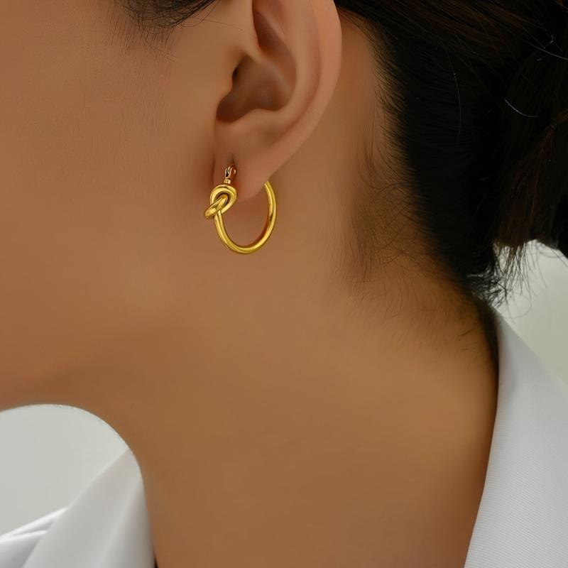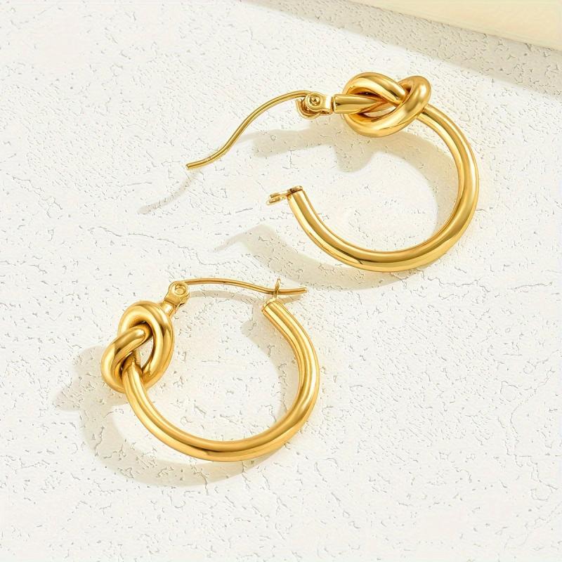 These 18K gold plated stainless steel hoop earrings are perfect for any occasion, from Valentine's Day to all season parties and celebrations. The intricate lover knot design adds a touch of romance to any outfit.