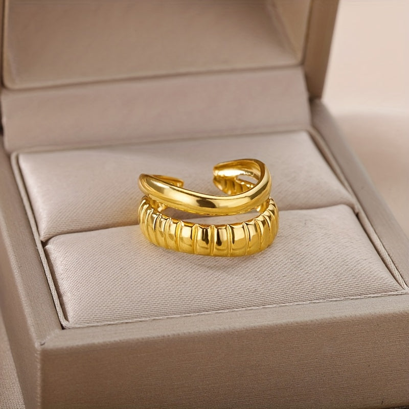 18k Plated Stainless Steel Men's Geometric Open Ring