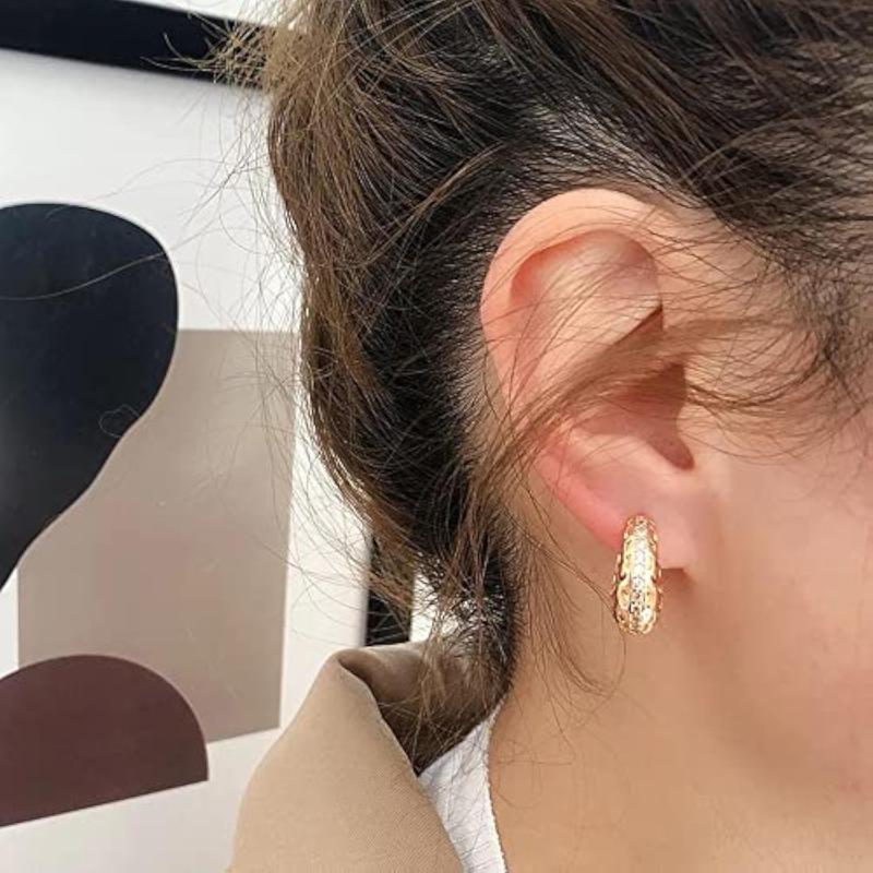 Elegant and trendy 18k plated copper Zircon Bali earrings, perfect for any occasion.