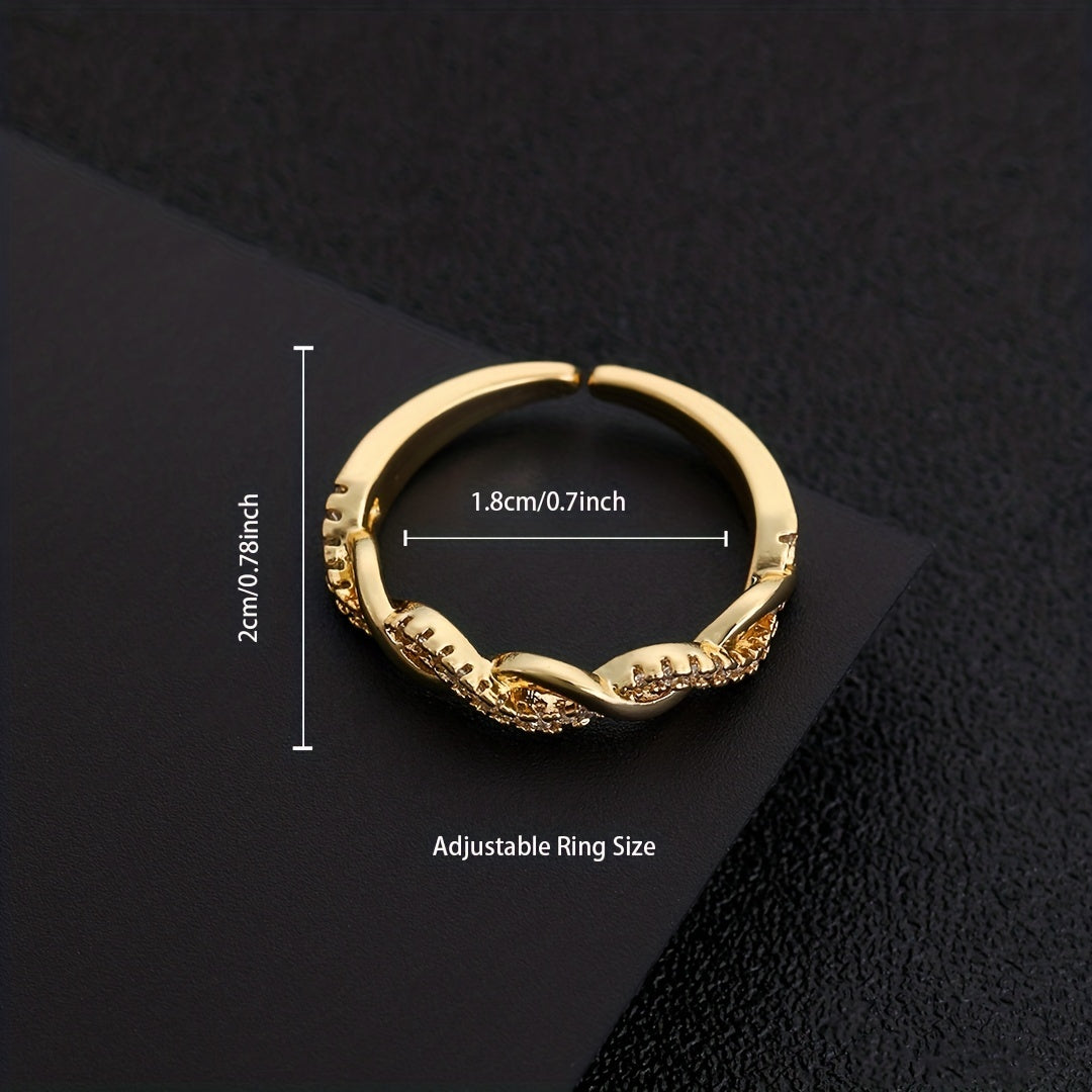 This elegant ring features 18K plated zircon with an adjustable design suitable for all finger sizes. Perfect accessory for any occasion.