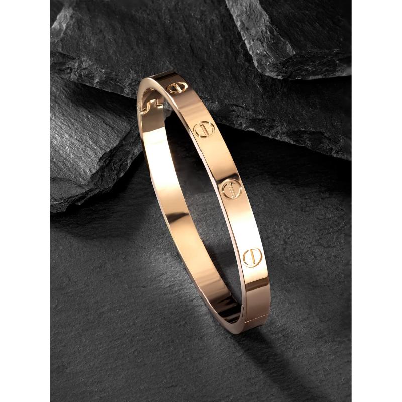 Elegant and durable 316L stainless steel kada bracelet with 18K rose plating.