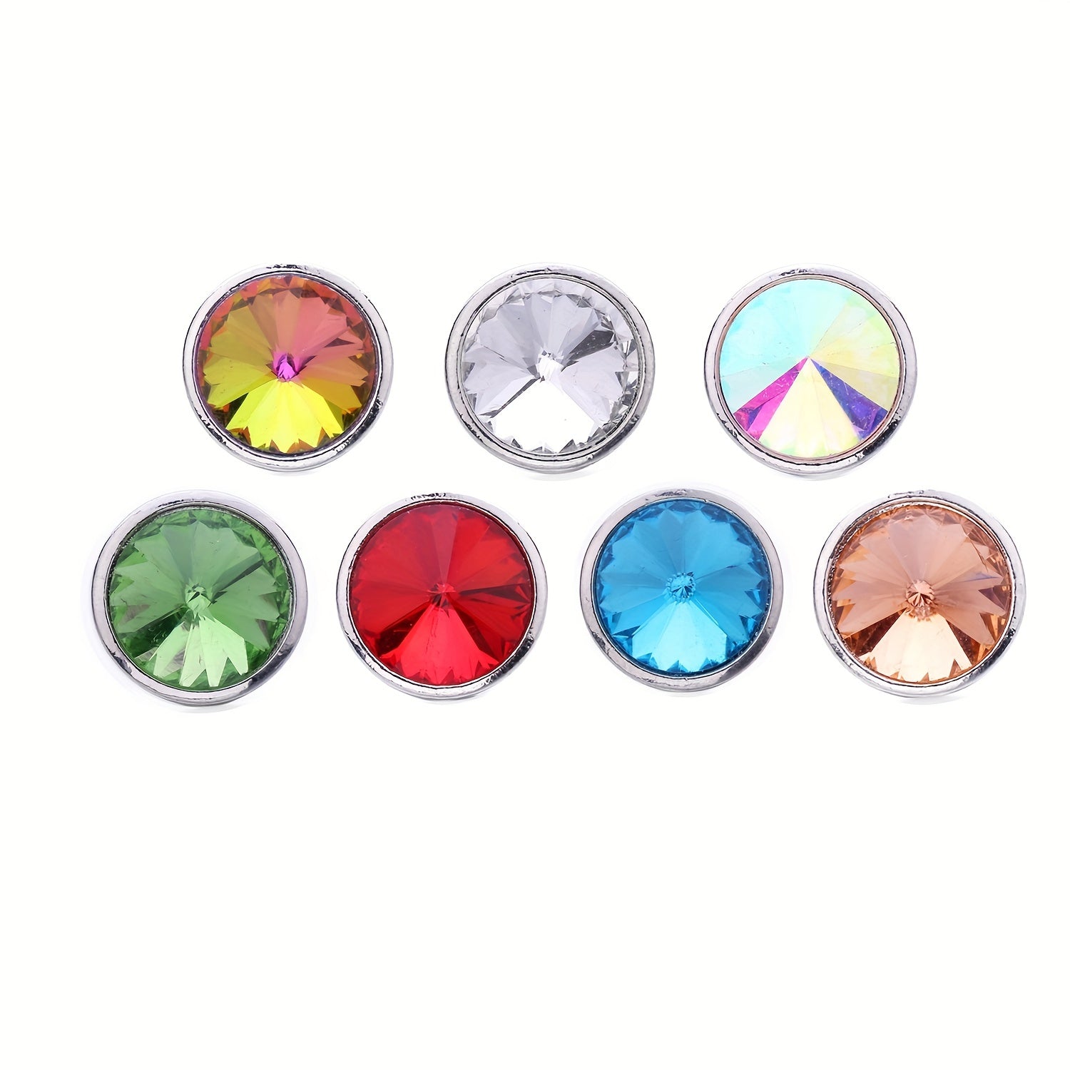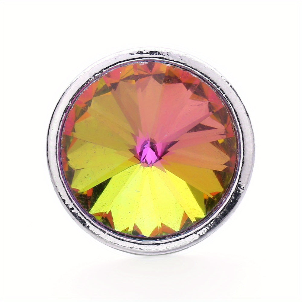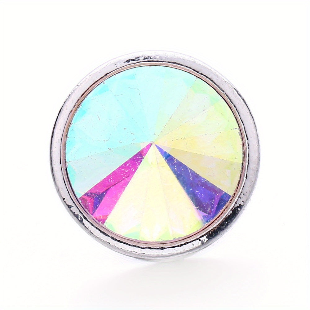 Enhance your jewelry creations with this 18mm snap button featuring pointed rhinestones. Perfect for DIY bracelets, necklaces, and other accessories.