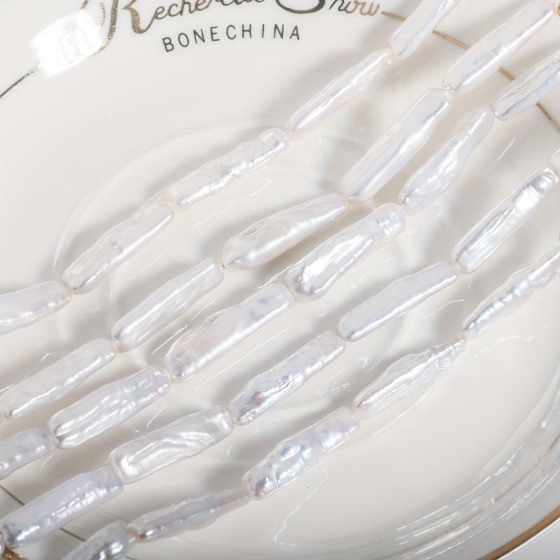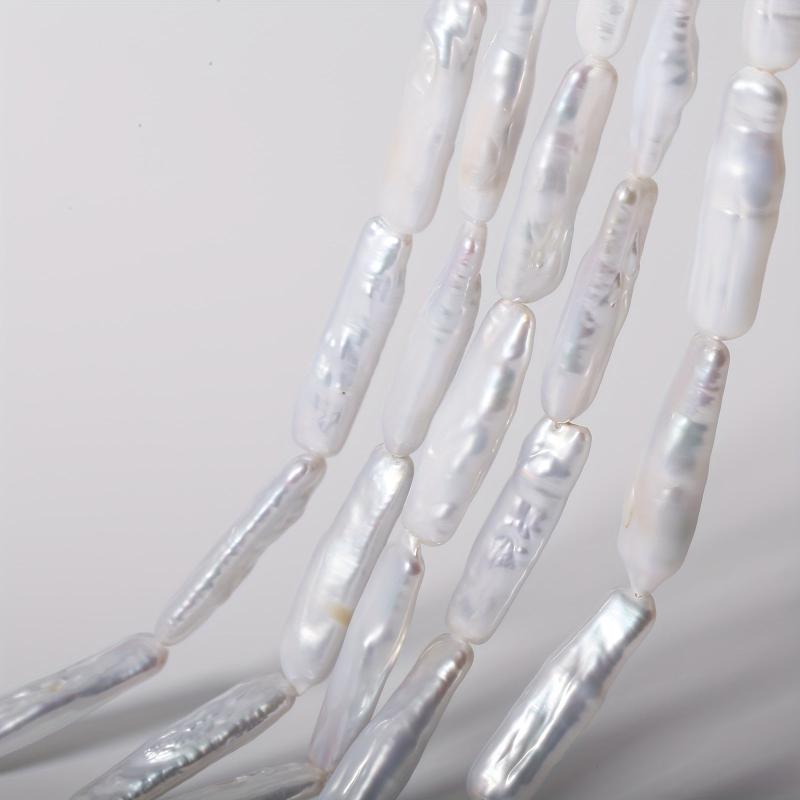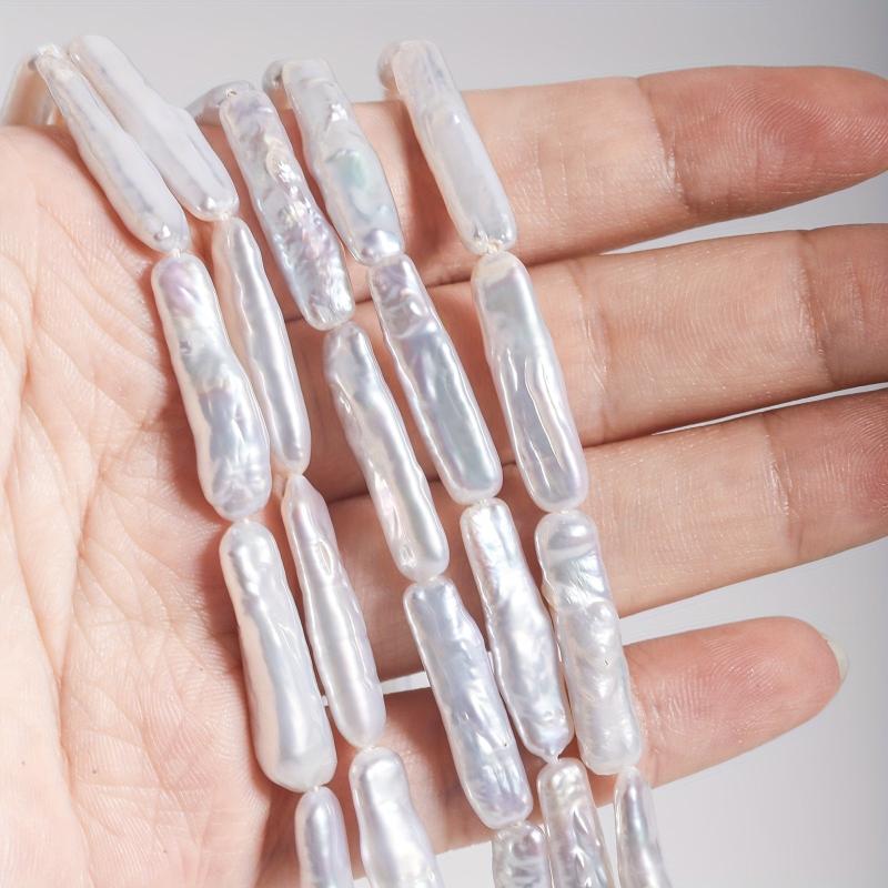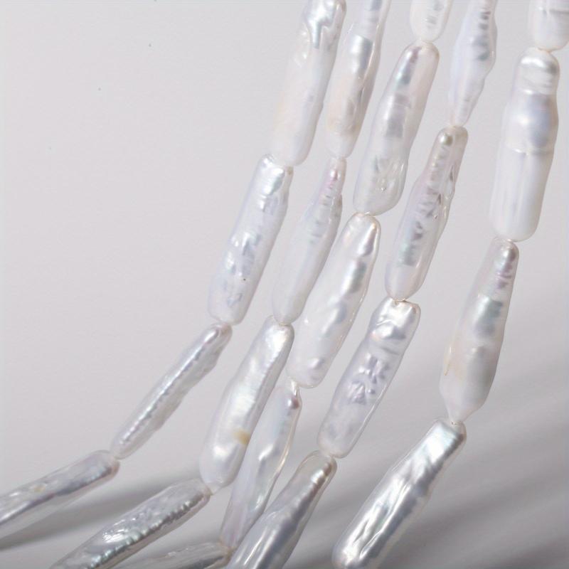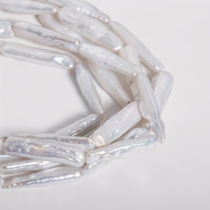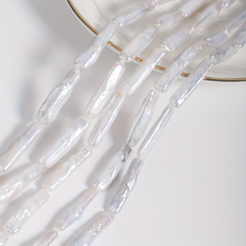 Get 18 special shaped thin long freshwater pearl beads ideal for jewelry making.