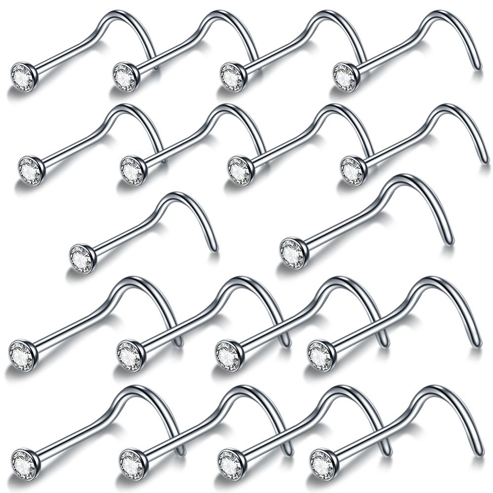 Enhance your style with this set of 18 stainless steel nose rings in 20G size. Featuring twisted designs, these rings are perfect for nostril piercings and add a touch of edgy elegance to your look.