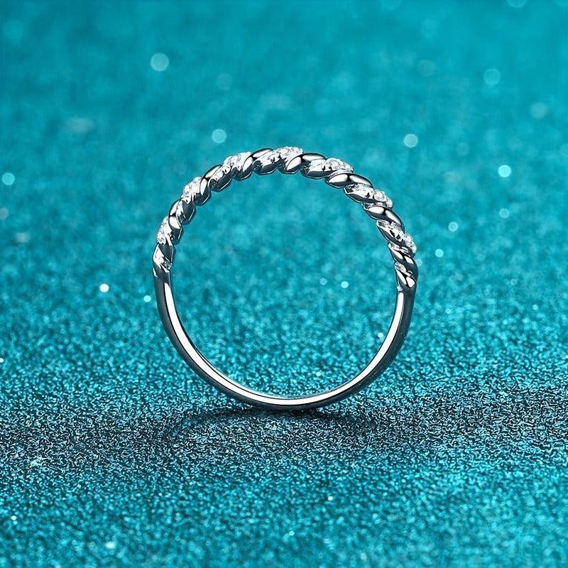 Elegant and versatile, this twisted buckle ring features a 1CT Moissanite stone set in S925 silver. Perfect for daily wear or special occasions.