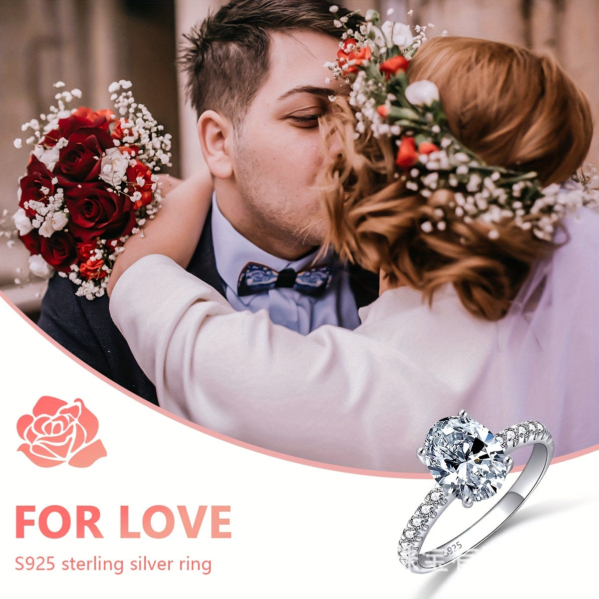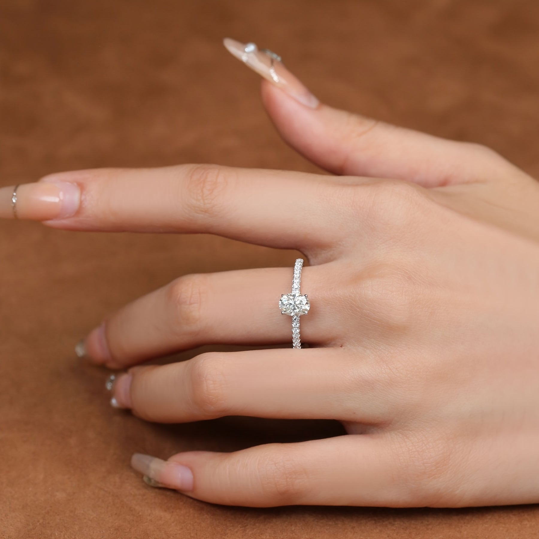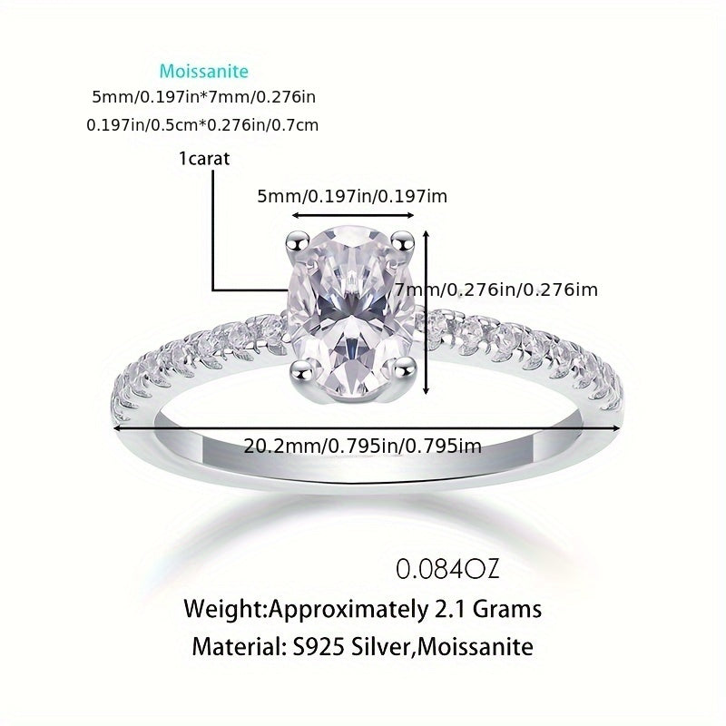 Elegant and stunning oval Moissanite engagement ring crafted in S925 sterling silver. This European and American style ring is perfect for brides looking for a unique and timeless piece of jewelry.