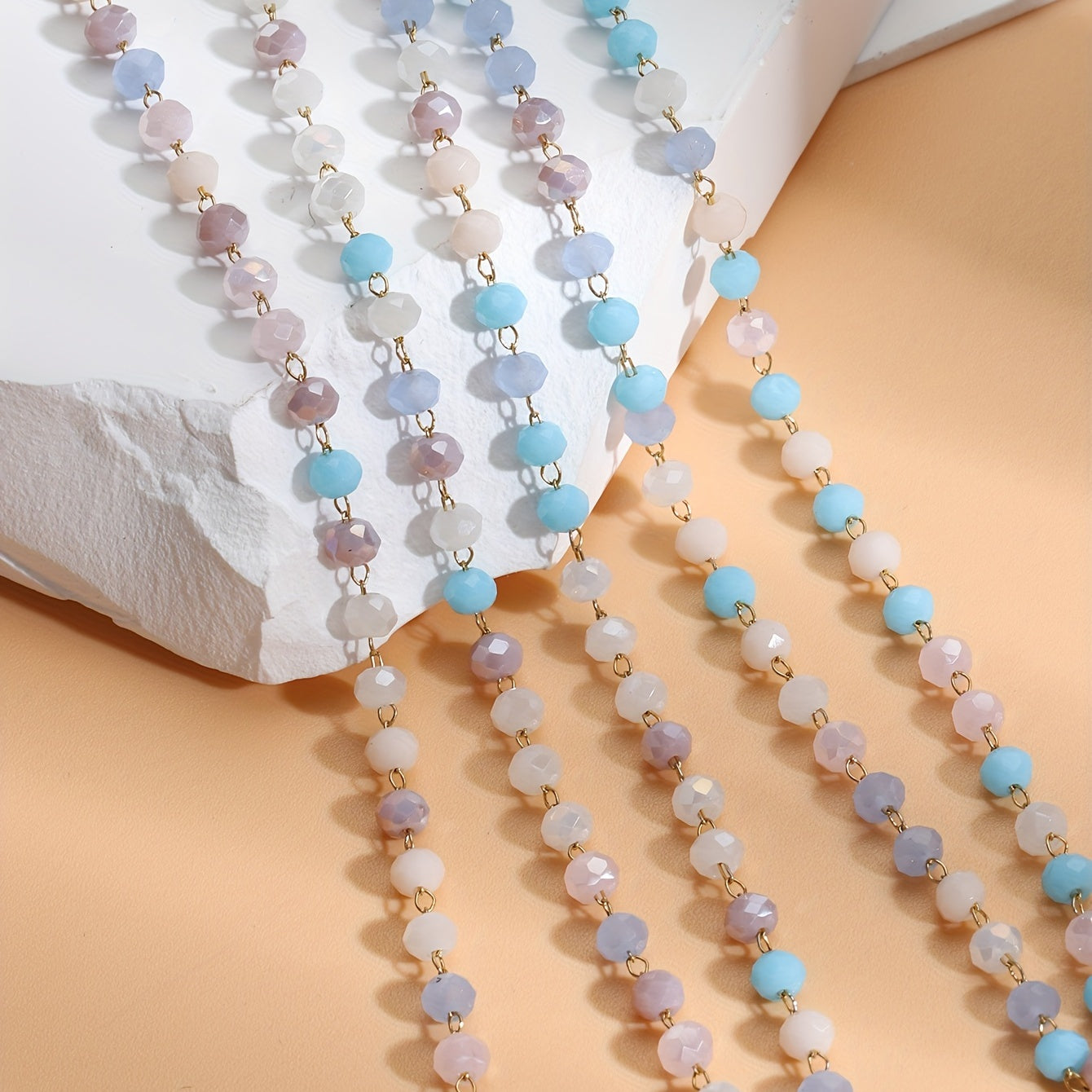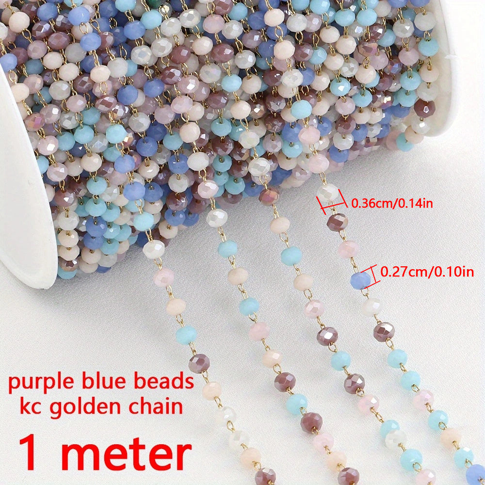 Get creative with this 1-meter long crystal stone stainless steel chain in red and purple. Perfect for making necklaces, bracelets, or sweater chains.
