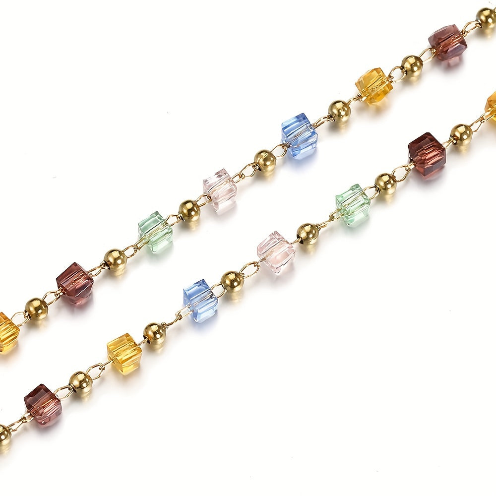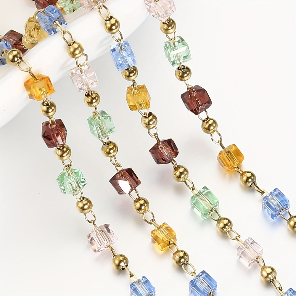 Create stunning jewelry pieces with this 1-meter strand of fashionable and colorful cube crystal chain. Perfect for DIY projects and adding a touch of elegance to your designs.