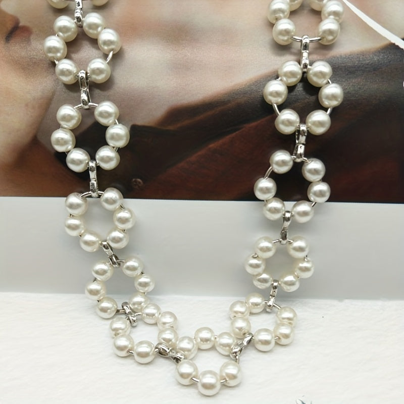 This faux pearl chain is perfect for clothing or accessory decoration. It measures 1 meter in length and is available in gold or silver.