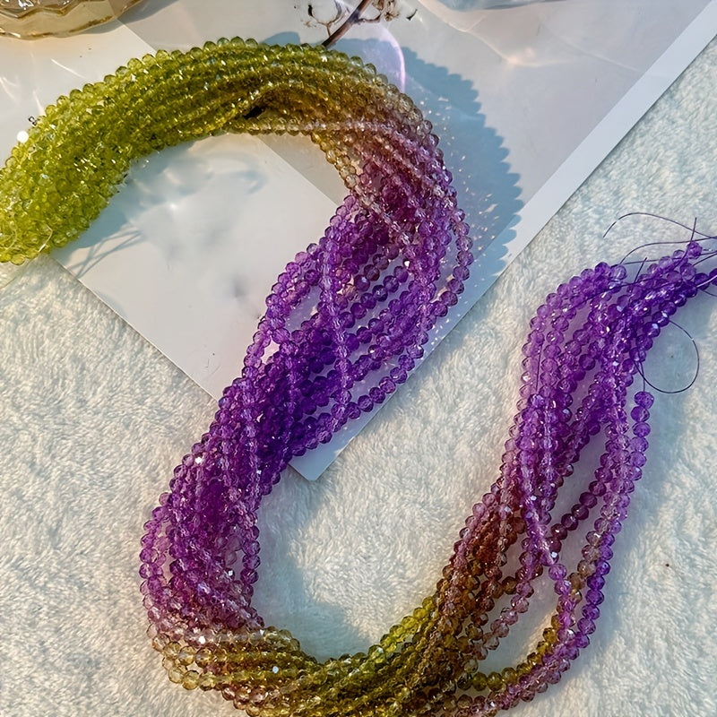 Create stunning jewelry with these colorful gradient purple and yellow faux crystal beads. Perfect for DIY projects!