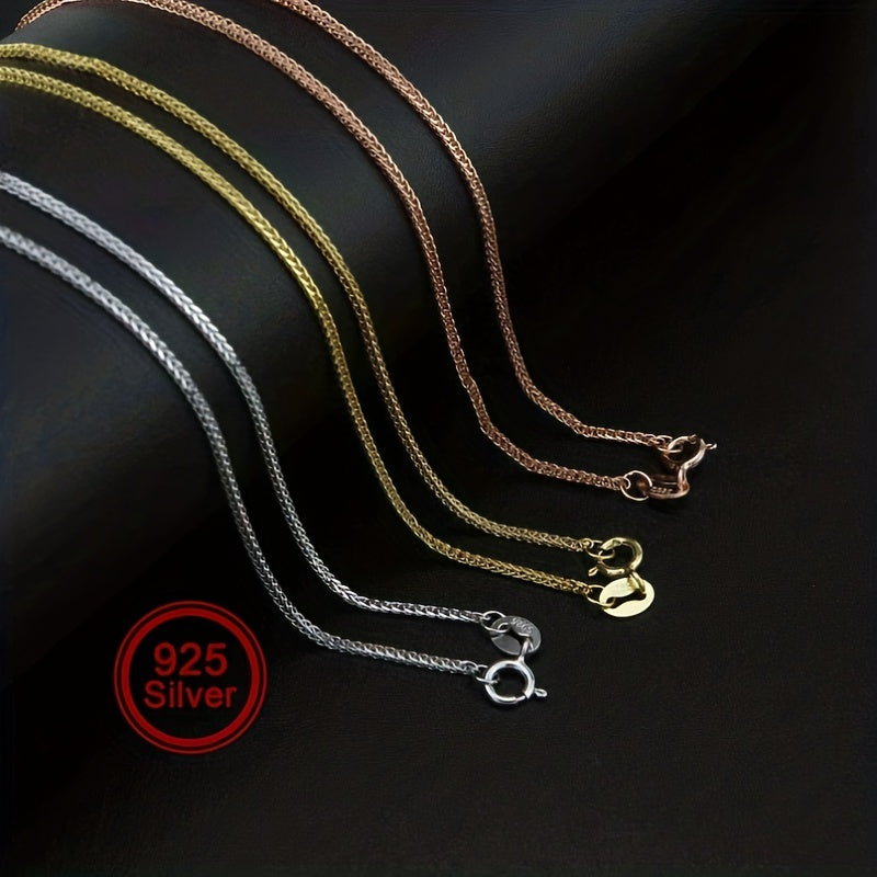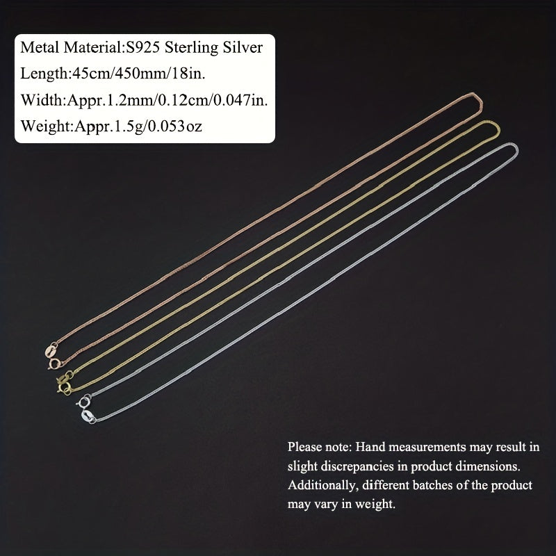 This necklace chain is made of solid 925 sterling silver and comes in rose golden color. It is 1-2mm thick and available in 16-18 inches length.