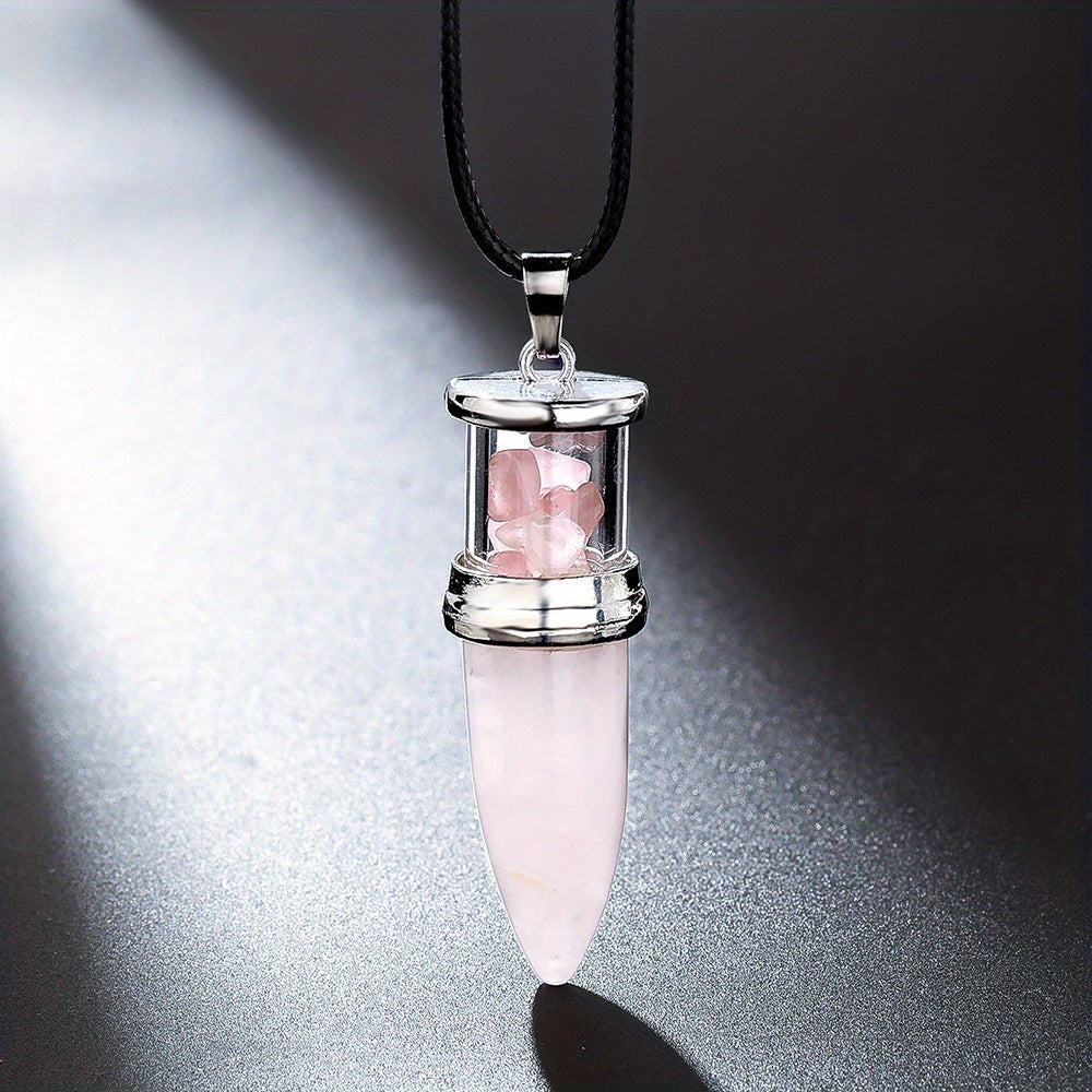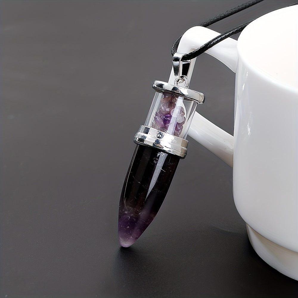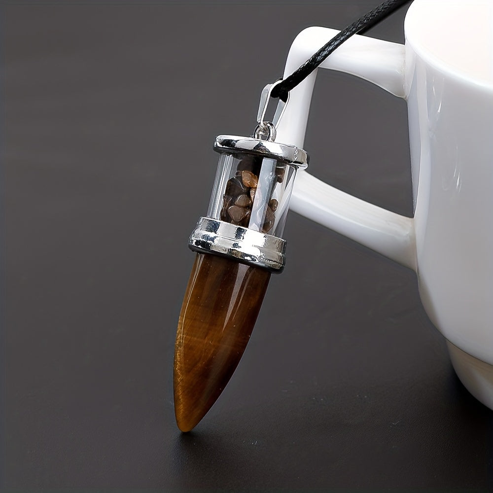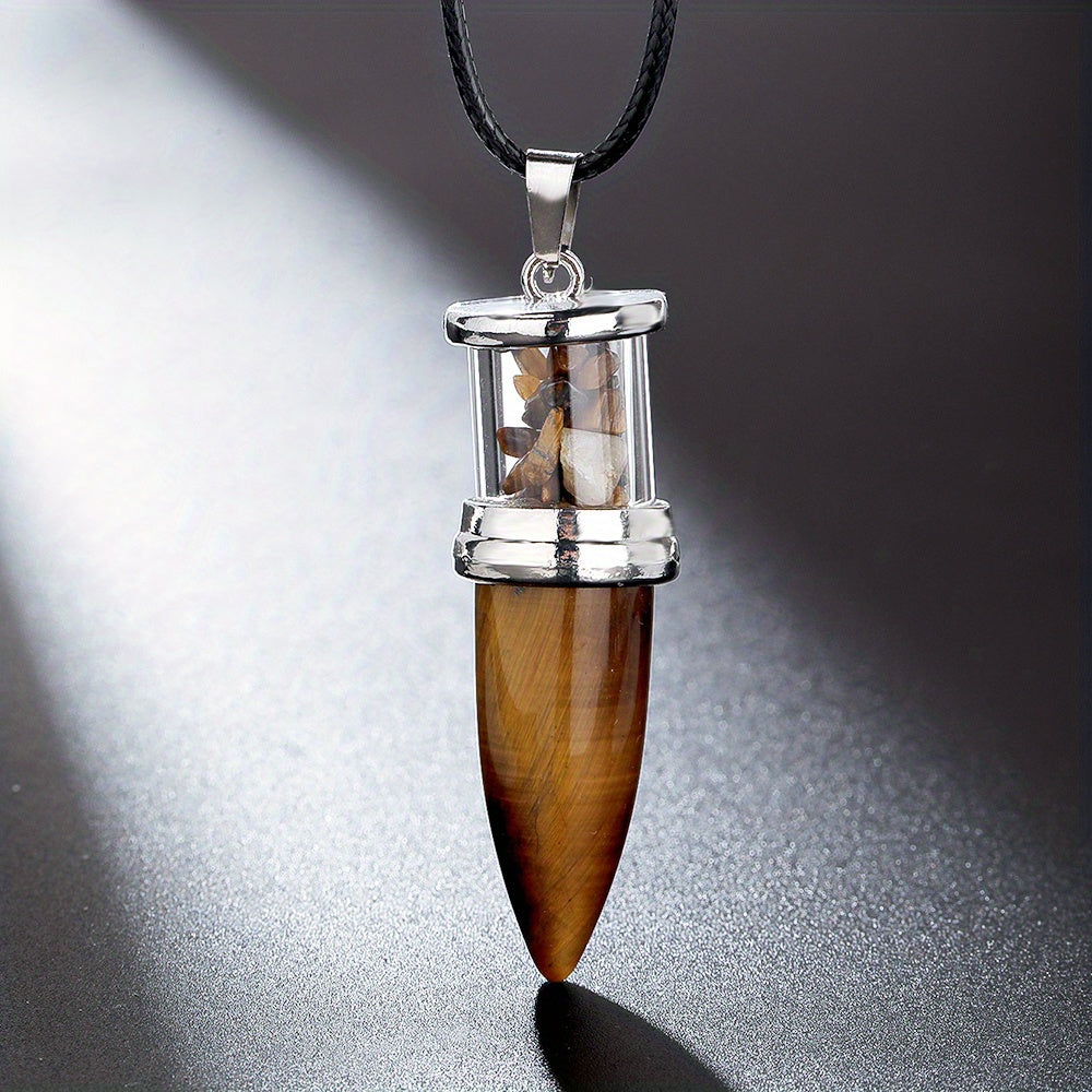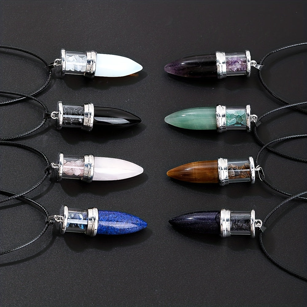 This natural stone bullet shaped pendulum pendant necklace is designed with 8 colors of quartz gemstone gravel. It makes a perfect gift for boys as a lucky stone.