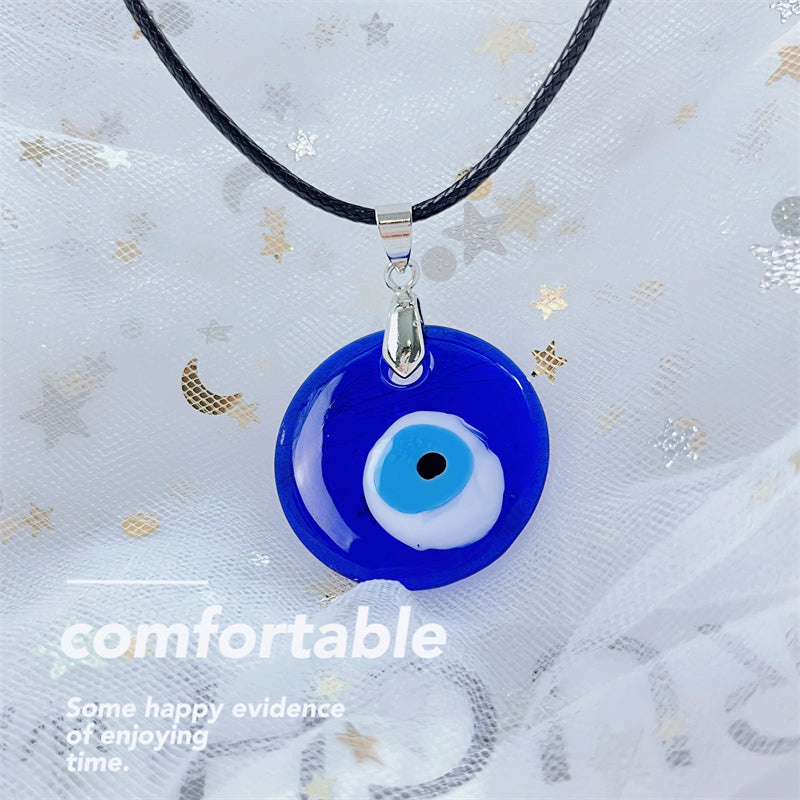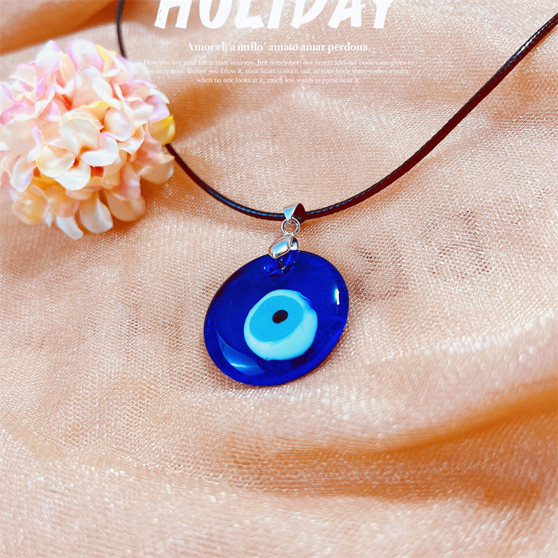 Elegant Evil Eye necklace featuring a glass pendant on a leather rope. Perfect for protection and style.