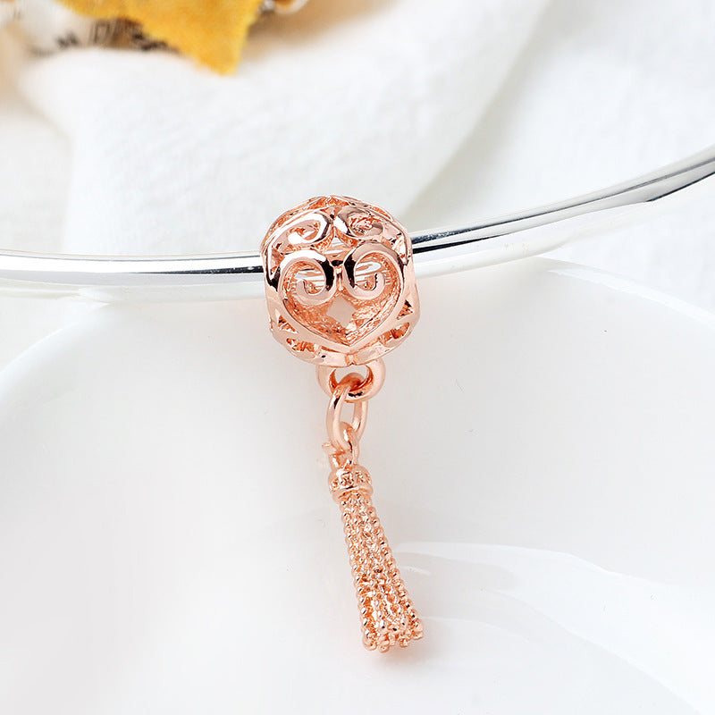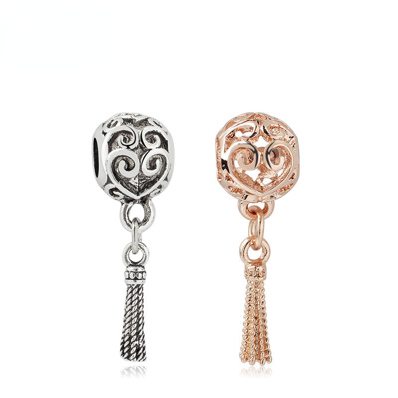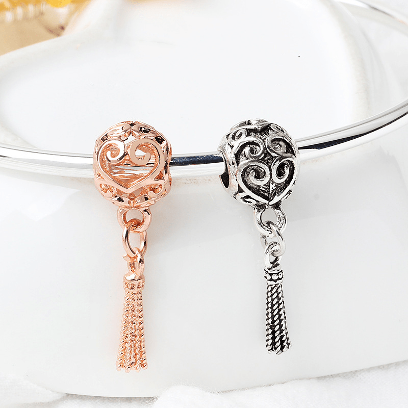 This hollow ball tassel bead is a stylish accessory for creating your own bracelet. Made of silver or rose golden alloy, it adds a fashionable touch to your jewelry designs.