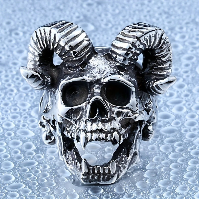 Add a touch of personality with this unique Baphomet goat head skull ring. Perfect for gothic style lovers and bikers.
