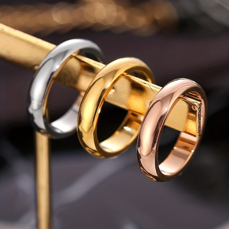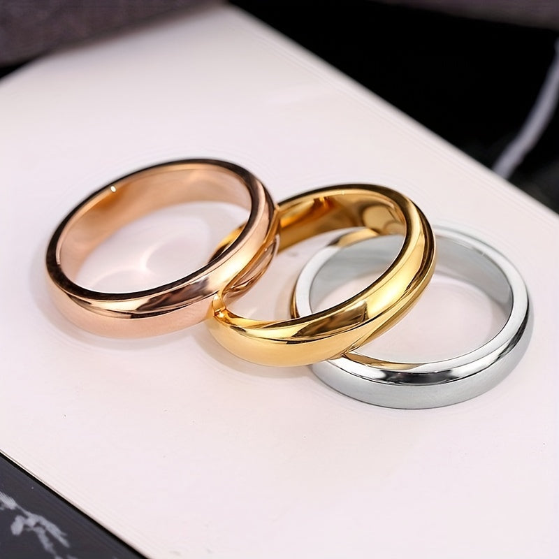 This titanium steel ring is designed for couples, featuring a glossy plain design with a 4MM width. Perfect for matching with your partner.