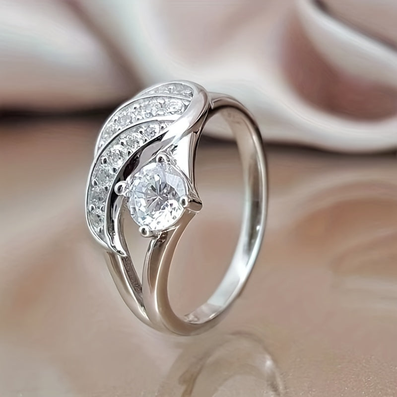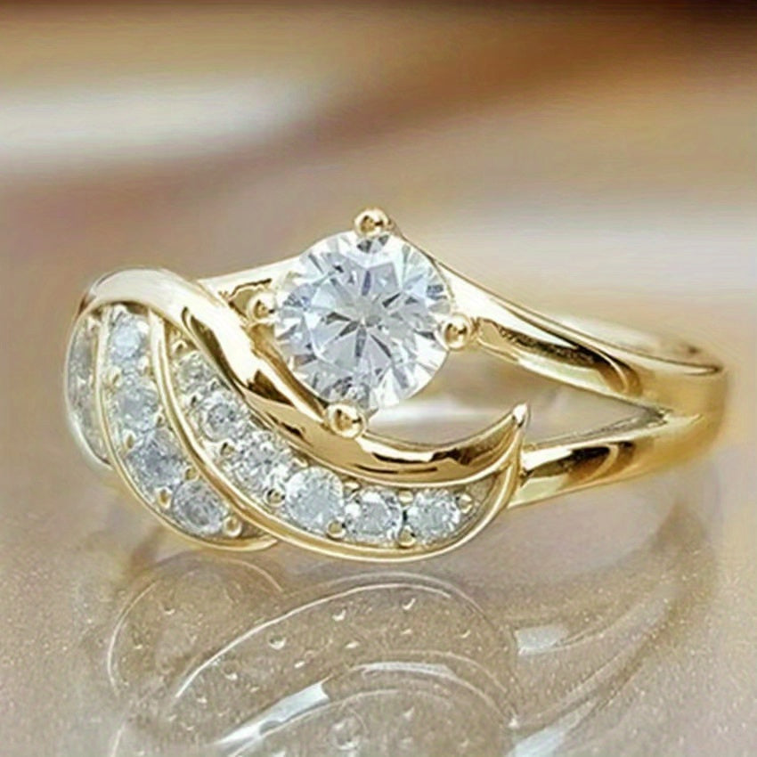 Elegant zircon ring featuring angel wings design, perfect for men and women.
