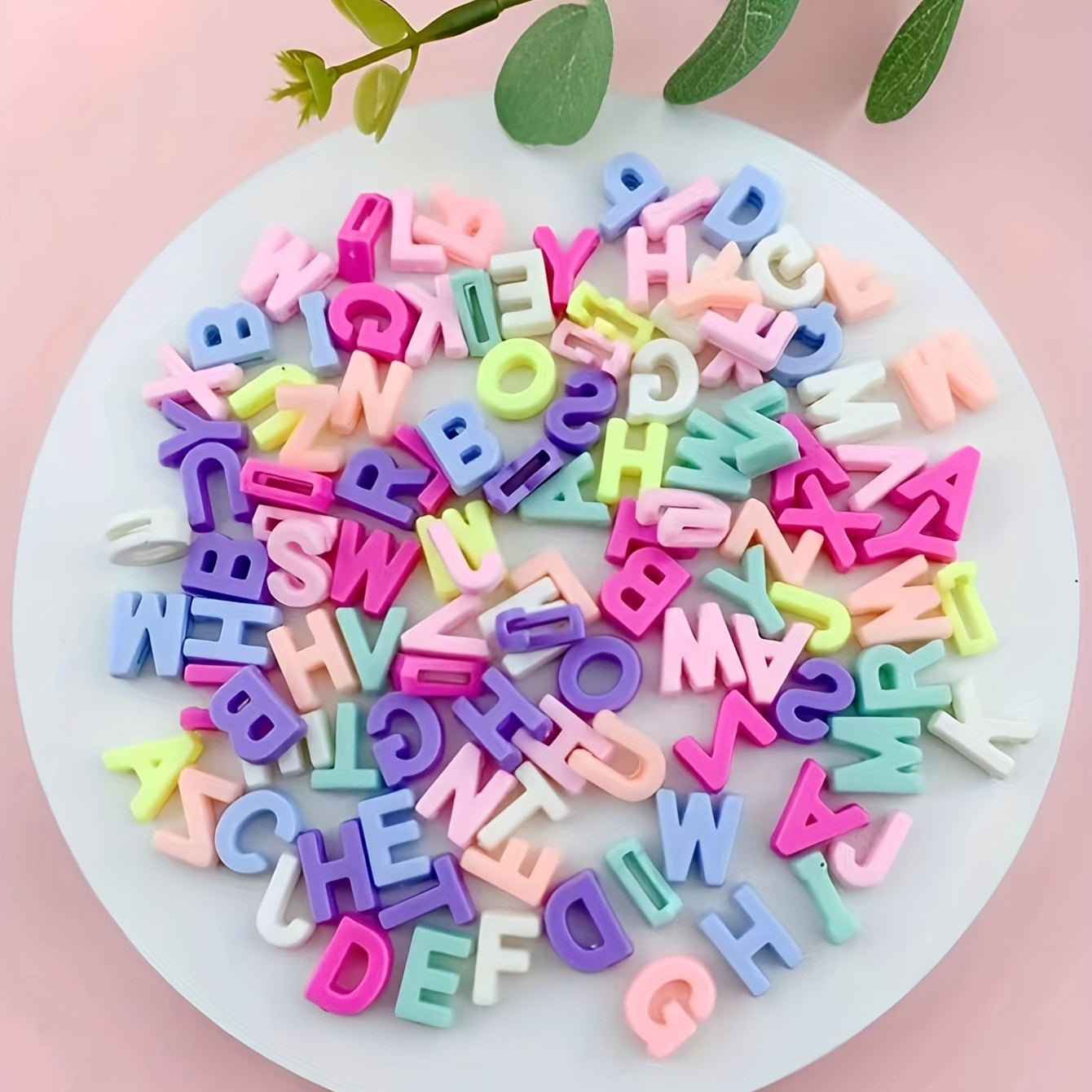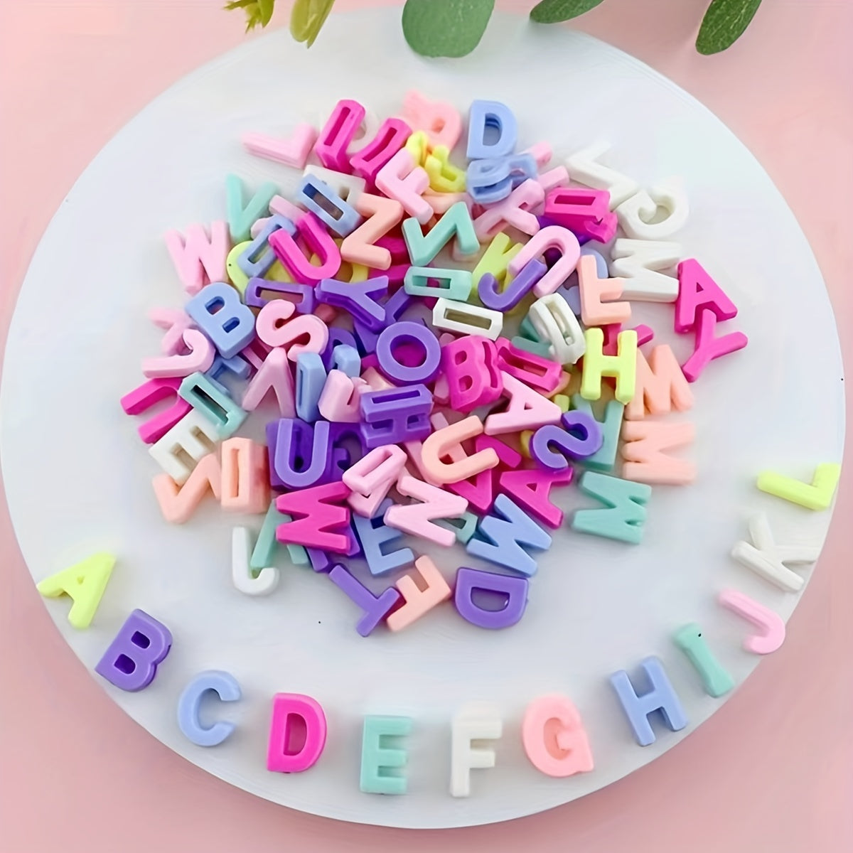 This set includes mixed plastic funky letter beads perfect for creating unique jewelry pieces. Ideal for DIY projects and craft activities.