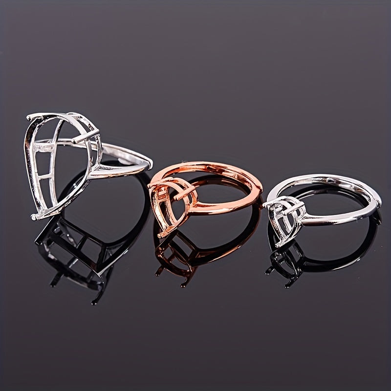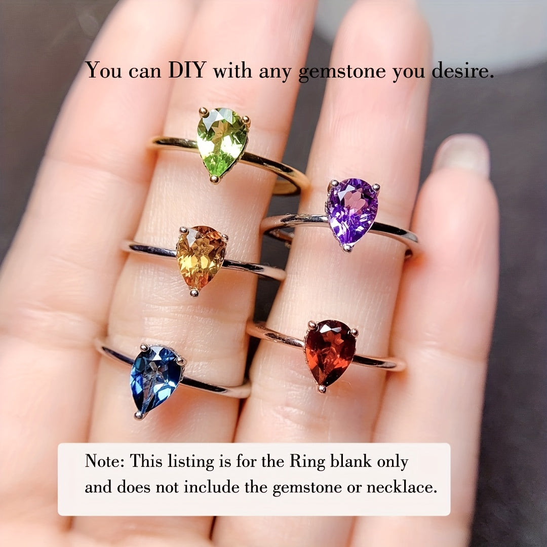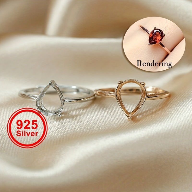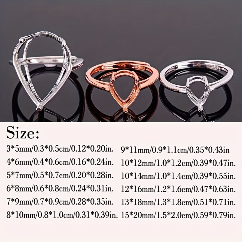 This 925 sterling silver ring setting features a pear tear drop CZ stone prong bezel design. Available in multiple sizes with a rose golden or silvery finish.