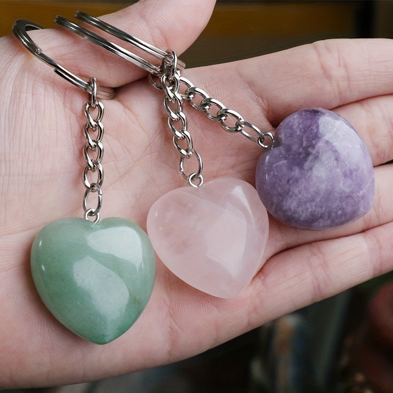 This beautiful heart-shaped key chain pendant is made of high-quality rock crystal agate, perfect for DIY decorative accessories.