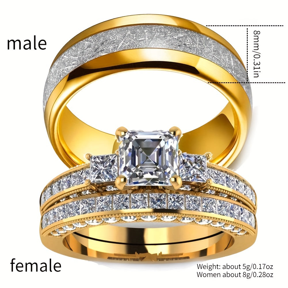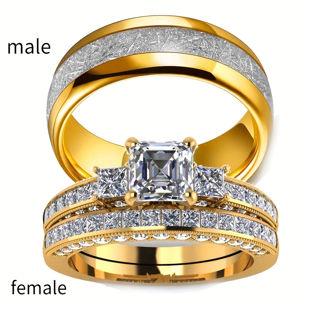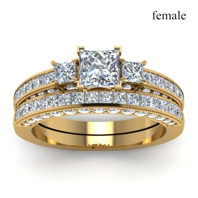 This stylish ring features zircon stones and is perfect for engagements and weddings.