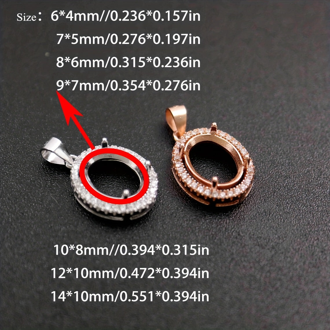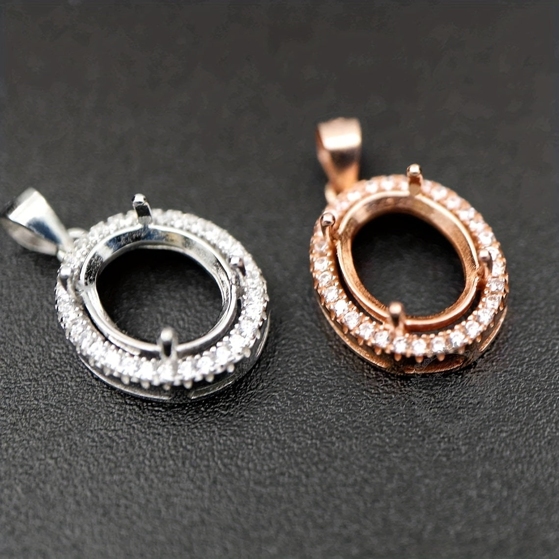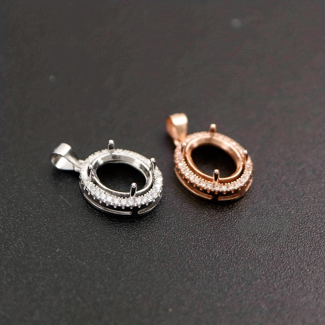 Get this 1-piece set of rose golden or silvery prong bezel settings for oval stones. Made of solid 925 sterling silver, perfect for DIY pendant charms.