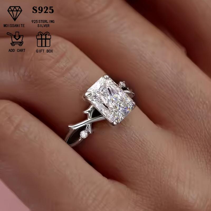 This stunning women's wedding ring features a 2 carat moissanite stone set in a low allergy S925 silver band. Perfect for parties and as a gift for proposals and engagements.