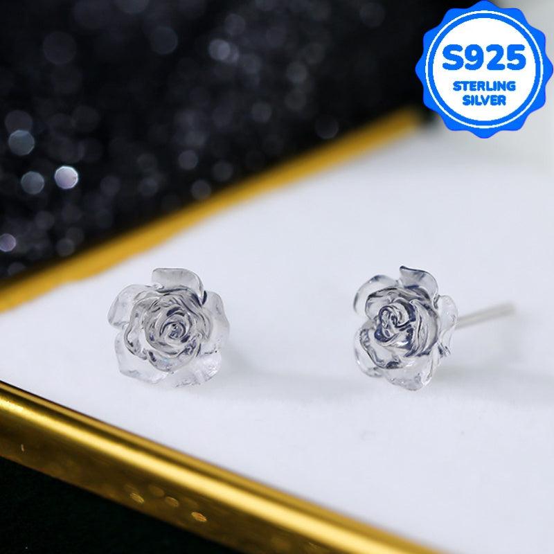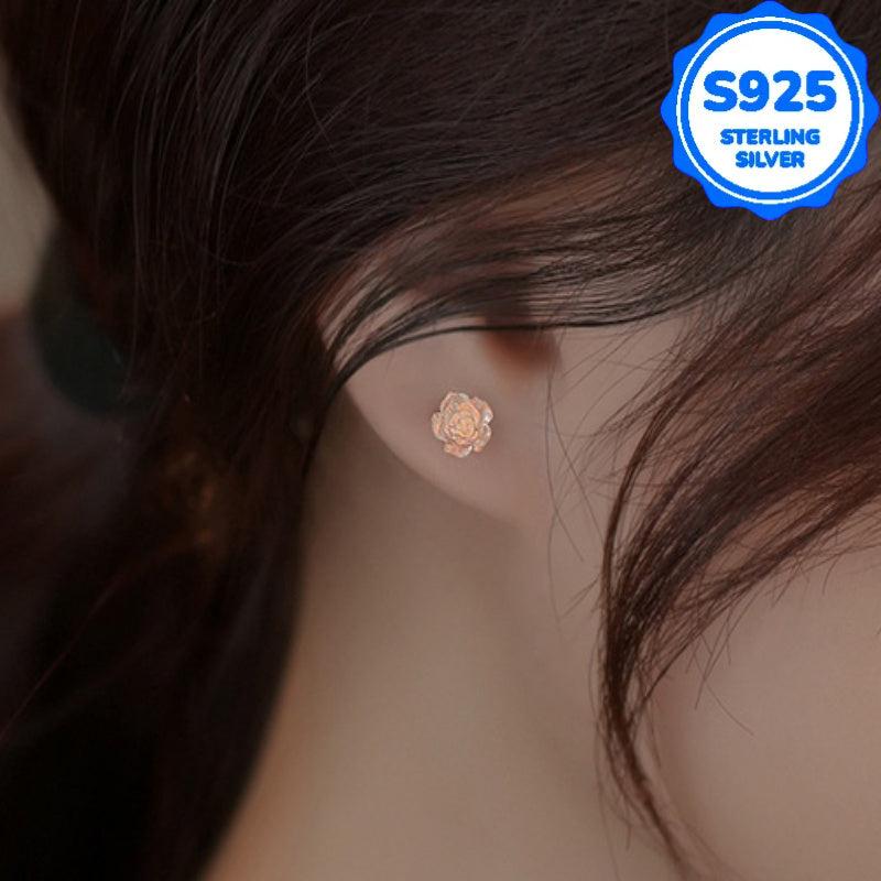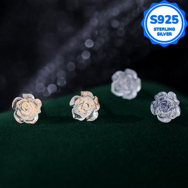 Get 2 pairs of hypoallergenic 925 silver earrings – sweet rose studs with iridescent stones. Perfect for spring, summer, and daily wear. A unique and stylish gift idea.
