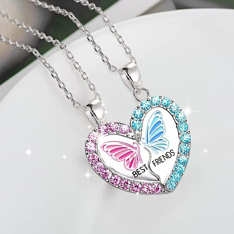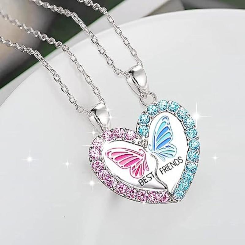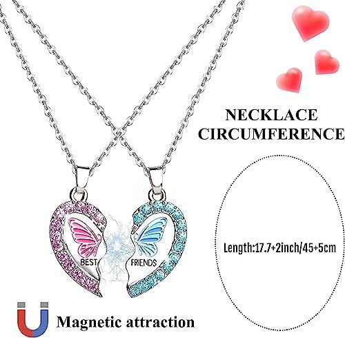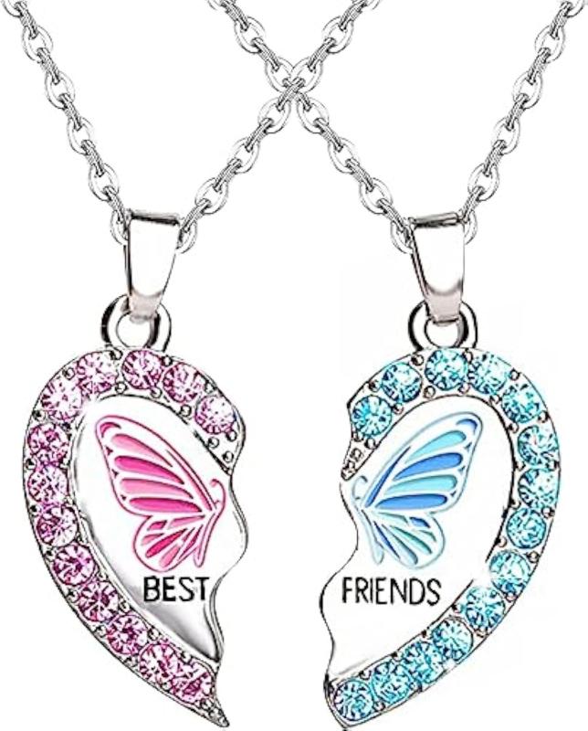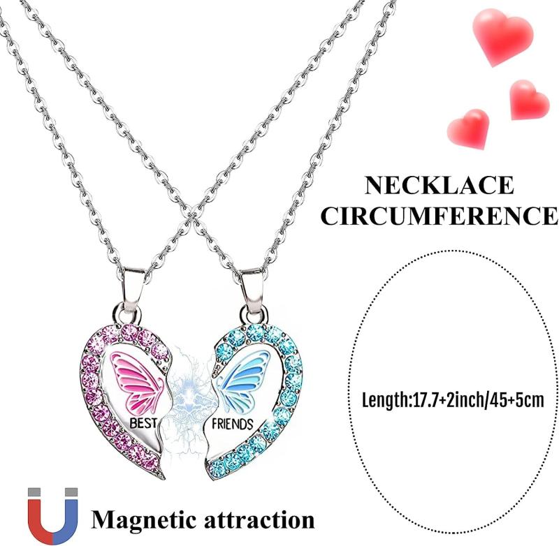 This set of 2 BFF Forever split magnetic pendant necklaces features a charming design with a pink heart and butterfly. Share with your best friend to show your everlasting friendship!