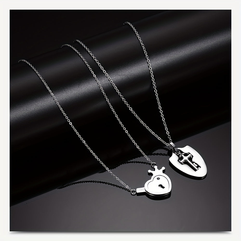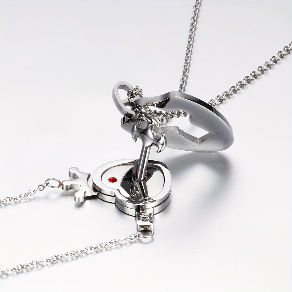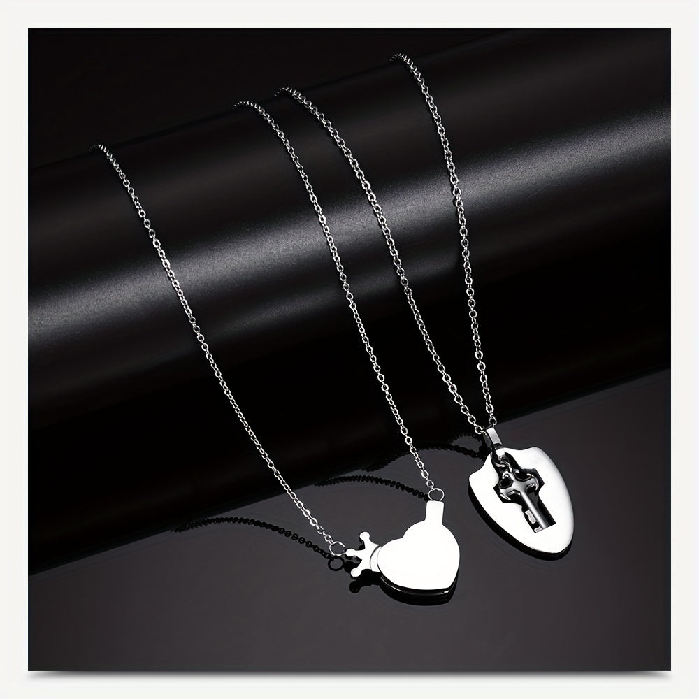 Elegant pair of necklaces made of titanium steel, perfect gift for men, women, or couples. Ideal for parties or everyday wear.