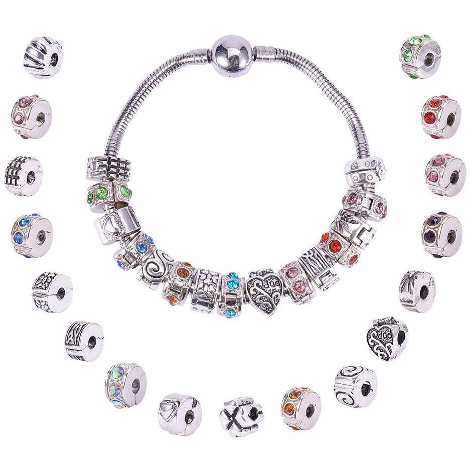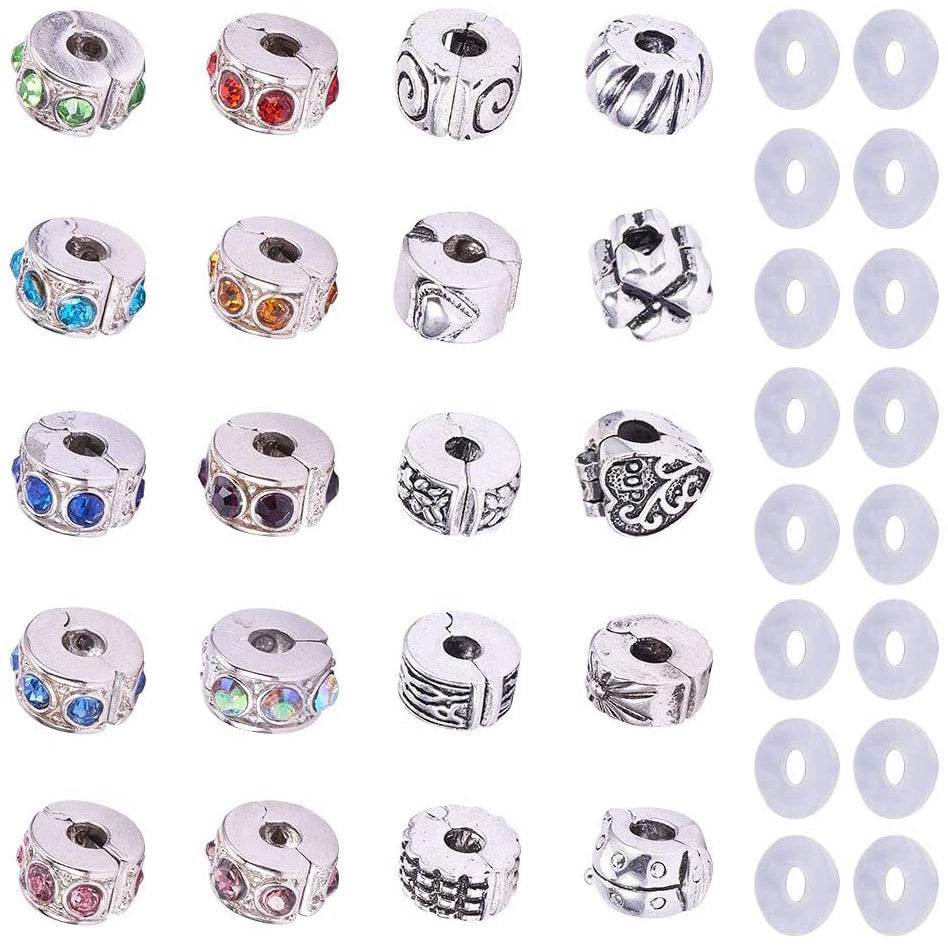 This set includes 20 bead charms and 20 silicon rubber stopper O rings, perfect for creating your own bracelets and necklaces. Ideal for DIY jewelry making.