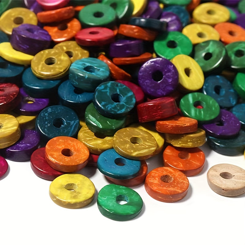This bag contains 20 pieces of mixed irregular thickness oblate round wood chip beads, perfect for DIY jewelry and clothing accessories. Each bead has a straight hole for easy stringing and separation.