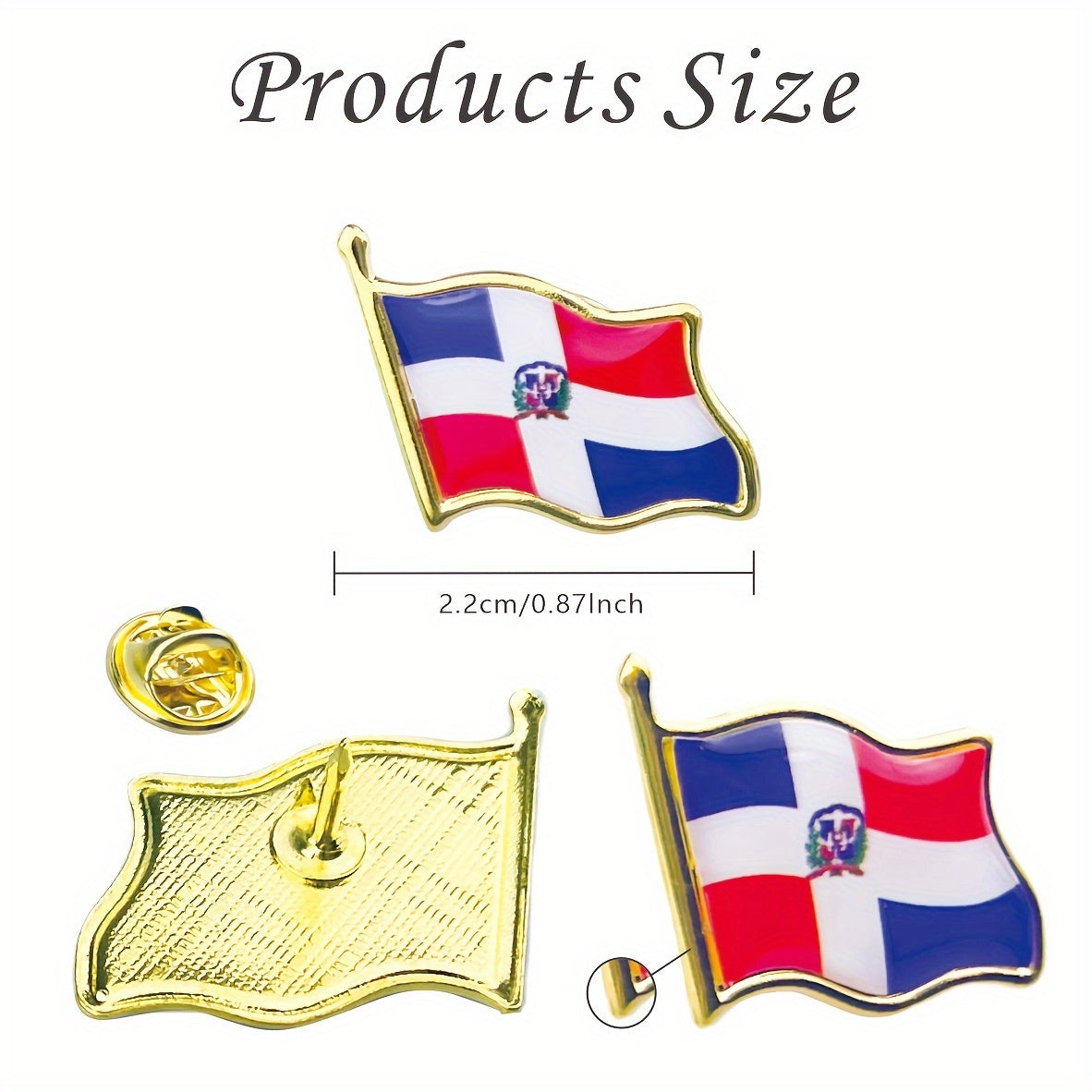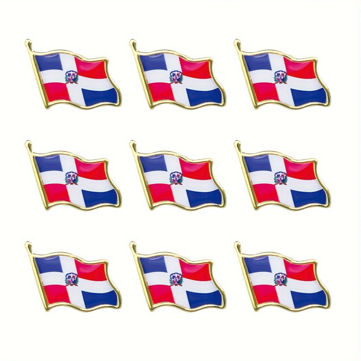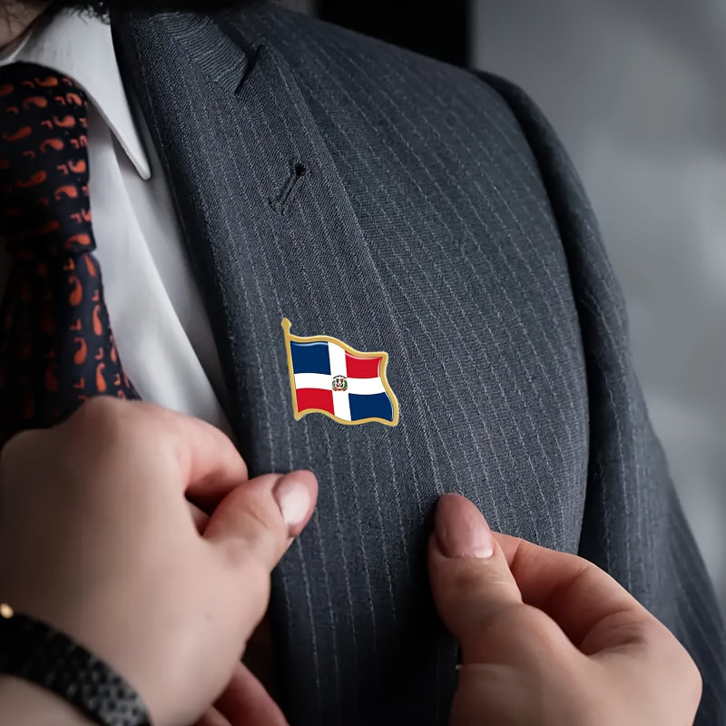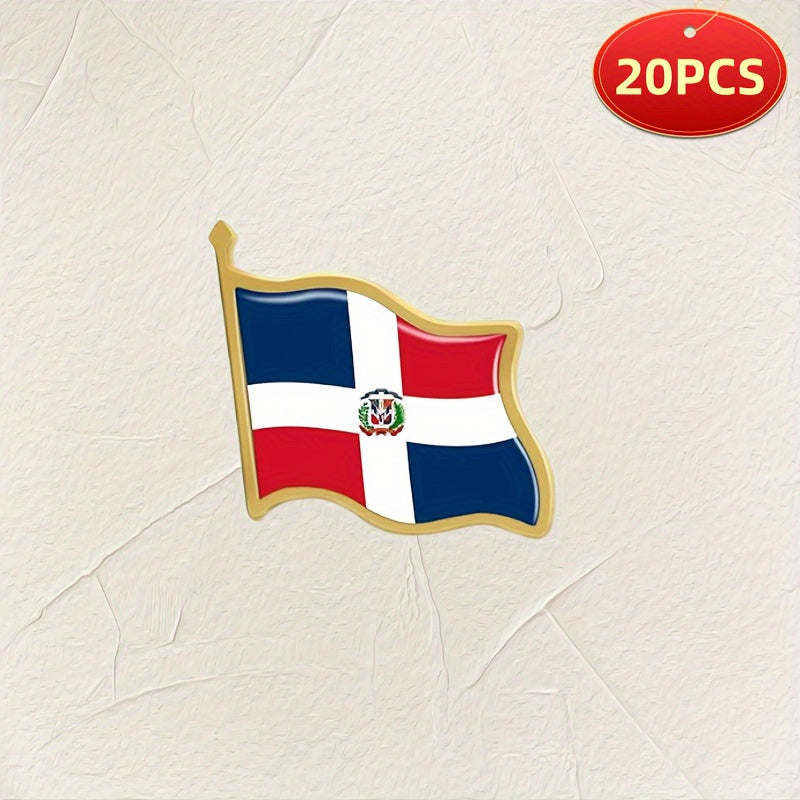 Show your Dominican Republic pride with this set of 20 vintage alloy flag lapel pins. These irregularly shaped brooches are perfect for showcasing your patriotism.