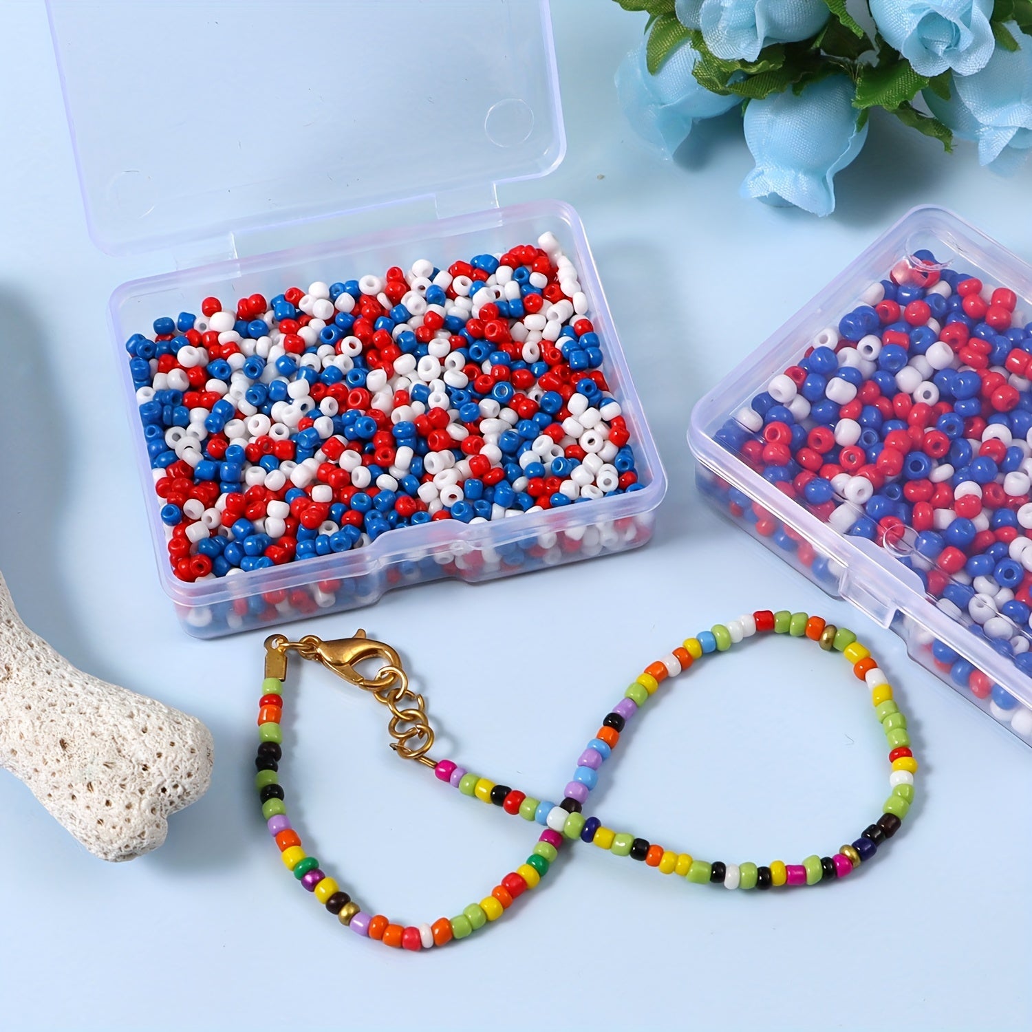Get 2000pcs red rice beads in multiple sizes for creating beautiful Fourth of July hand string necklaces. Perfect for DIY jewelry making projects.