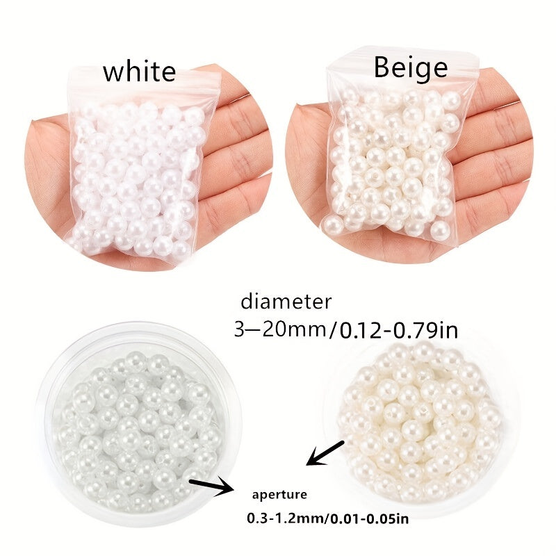 Create stunning DIY accessories with this set of 200 beige pearl beads. Perfect for earrings, bracelets, necklaces, and more. Includes 0.3mm fishing line and opp for easy crafting.
