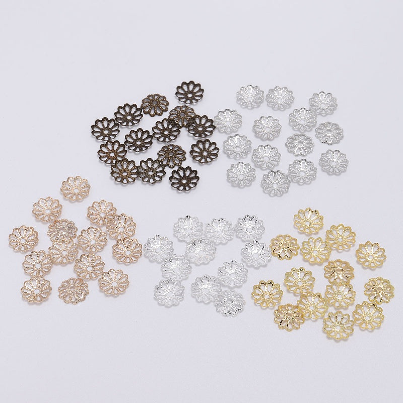 Get a set of 200 metal hollow flower holders for DIY jewelry making. These natural stone beads caps are perfect for creating beautiful accessories.